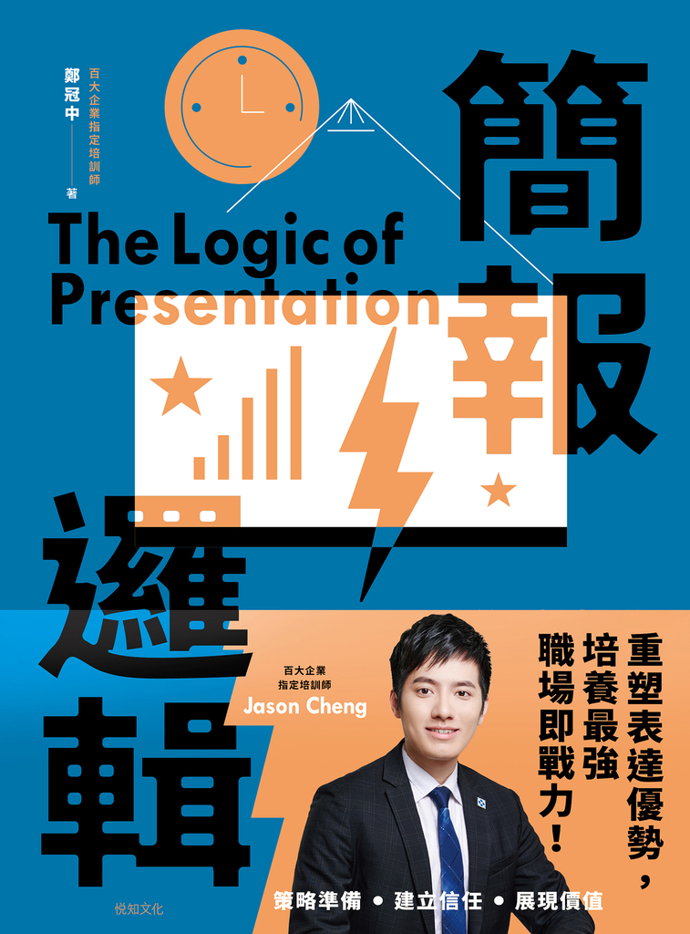 作者介紹 鄭冠中 Jason Cheng邁傑企管顧問創辦人,百大企業指定培訓師。擁有十年以上為國內外職場人士提供商業簡報專業訓練的經驗,學員累計 50,000 人次。以新世代觀點及啟發性教學著稱,根據近萬份匿名課後問卷,滿意度高達 9 成。重視「所學即所用」,流暢的學習節奏,以平均每 30 秒換 1 張投影片,讓學員能沉浸在課程內容之中。目前專注於企業教育訓練、商業簡報訂製,以及擔任零售業品牌研究顧問。服務客戶包含:上銀科技、Estée Lauder Companies、國泰金控、一零四資訊科技、MOMO、嘉里大榮物流、功學社、Würth Elektronik、AIT美國在台協會、Stanley Black & Decker、Hahow 好學校、中磊電子、特力集團、Jones Day、Panasonic、台灣人壽、臺灣銀行、Kia、熒茂光學、公勝保經、總統盃黑客松、泰山彈簧、成大醫院、陽明附醫、疾管署以及多家國際藥廠等。對於培訓極富熱忱,樂於協助解決客戶的疑難雜症,期許彼此都能「邁向傑出」。閒暇時,喜愛關注科技局勢、競技運動,特別熱愛棒球以及陪著可愛的孩子成長。 官方網站:www.mjpcg.comYouTube:https: pse.is 6epq6b