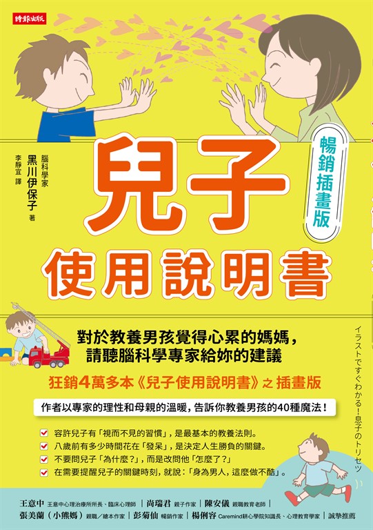 本書將暢銷書《兒子使用說明書》的內容加以濃縮,並搭配生動活潑的插畫,精選出教養兒子的40個秘訣,包括了解兒子的大腦發展特徵、如何應對
