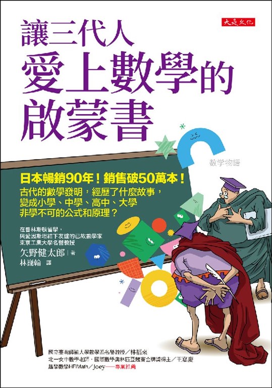 內容簡介 ◎從鳥巢裡偷走鳥蛋,母鳥會發覺嗎?鳥、狗、馬會數「數」嗎? ◎埃及人畫直角只需要用一根繩子,怎麼辦到? ◎用一根木棒,就能算出金字塔高度?2,600年前的數學家泰利斯已經懂「比例」。 ◎除《聖經》外最多人讀過的書──《幾何原本》,很多中學課本還在用。 本書首次出版於1936年,歷經數家出版社、數次改版, 在日本持續銷售超過90年,銷售破50萬本! 作者矢野健太郎於1941年取得東京大學理學博士。 1950至1952年,曾在普林斯頓高等研究院留學,與愛因斯坦結下深厚的友誼。 他的專長是微分幾何學。在研究方面功績卓越, 著作被日本大學、專科學校採用作為教科書,於1993年過世。 本書用輕鬆的小故事與數學家不為人知的趣聞,分享:母鳥能分辨鳥巢裡到底有4顆蛋還是5顆蛋?遠古人類數數,手指和腳趾不夠用怎麼辦?「你的手指借我用一下!」 畢達哥拉斯發現畢氏定理後,竟殺了100頭牛獻祭? 奠定微積分理論基礎的牛頓,其實是重度貓奴鏟屎官?古代的數學,怎麼變成小學、中學、高中、大學課本裡的公式和原理?◎遠古人類如何數數?十根手指頭和十進位法。 學者曾深入偏遠地區研究土著,發現他們只能數到 2, 數量超過 2 就稱作「很多」!土著怎麼計算超過 2 的牲畜數量?用刻痕記帳法。 ◎尼羅河帶來的恩賜—─幾何學的誕生 尼羅河定期氾濫,常破壞規畫好的田畝,因此當局得重新劃分土地。 重新劃地就得算面積,幾何(geometry)就是源自土地(geo)測量(metry)。 ◎世界最知名的定理發現人畢達哥拉斯,竟有家歸不得。 畢達哥拉斯曾在義大利興辦學校,但他設了個奇妙規定:「研究結果不可外傳。」後來還干預國政招致民眾反感,害他的住家和學校被焚毀,最終流落他鄉。 ◎你現在還在讀他寫的教科書──《幾何原本》作者歐幾里得。 《幾何原本》是歐幾里得執教時用的教科書,直到兩千多年後的今天, 目前中學課本還在用它的內容,堪稱繼《聖經》後最多人讀過的書。 球體積公式:4 3乘π乘半徑的三次方, 4 3這個數字怎麼來的? 想知道35678÷9的餘數?把3、5、6、7、8加起來除以9就有解答。 如何用一筆畫畫完五芒星?這也跟數學有關,書裡教你小訣竅! 從算數與數字,到數學家的故事,日本暢銷90年!銷售破50萬本! 古代的數學發明,經歷了什麼故事, 變成小學、中學、高中、大學非學不可的公式和原理?