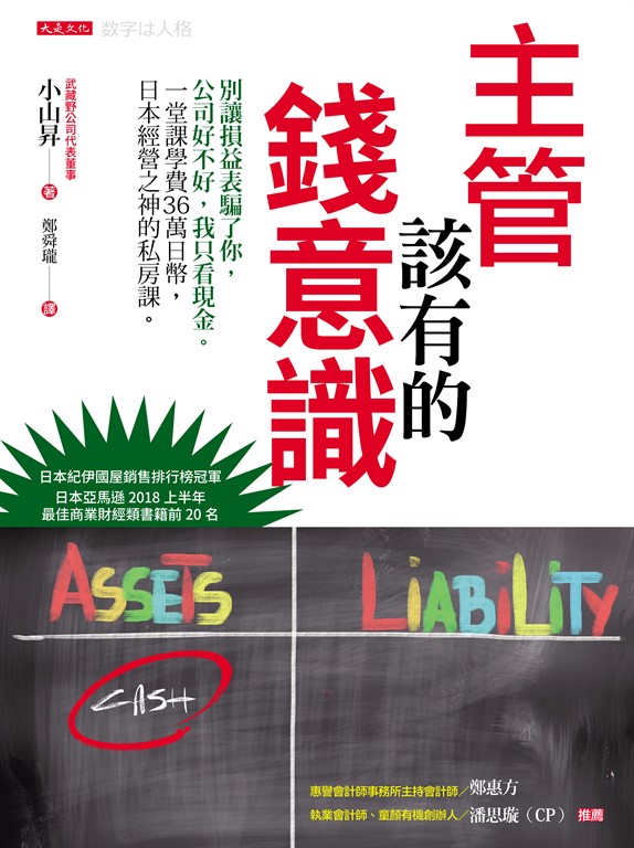 內容簡介 榮登日本紀伊國屋銷售排行榜冠軍日本亞馬遜年度最佳商業財經類書籍前20名本書作者小山昇是武藏野公司代表董事,被譽為日本中小企業經營之神,他輔導過700間公司,沒有一間倒閉,平均每5間就有一間突破過去最高收益,想跟在他身邊見習一天,學費是36萬日幣,還要等一年三個月才排得到。為什麼他這麼厲害?因為他用上千個案例告訴主管們(或是股票投資者),關於公司財報,別聽會計師的,他說:‧損益表其實會誤導你,關於經營,我只看一個數字,就是現金。‧經營者如果不敢借錢,就算獲利也拒絕向銀行借錢,這種公司必然萎縮,沒前途。‧猶豫要賺錢還是賠錢時,你該選擇賠錢。‧向銀行借錢,銀行根本不在乎你的獲利能力,他看的是還款能力。‧想提高營業額,你該做的不是提高客單價,而是增加來客率‧營業額沒成長,獲利和現金還是能兩位數成長。本書傳授你落實之道。‧公司虧損不會倒,公司沒錢才會倒。虧損有時候是好事,還得刻意製造虧損。 這些經常違反會計原則的判斷,才是獲利主管(或公司)該有的「錢意識」。◎ 借錢也得維持三個月的營業額現金。為什麼?這裡指的「現金」,是指現金加上可以隨時兌換成現金的活期存款。因為公司會倒閉,不是因為沒獲利,而是沒錢付廠商貨款或是無法應急,但為什麼是三個月?◎ 主管的錢意識:先看資產負債表,因為損益表會騙人‧比起損益表,你應該先看資產負債表 「獲利倒閉」的企業,例如生意興隆卻倒閉的餐廳,就是被損益表騙了。 資產負債表裡,科目一大堆,為什麼作者只在乎「現金存款」這一欄?‧作者眼中的優質企業,其資產負債表得長這樣: 資產類科目,列在越上面的金額要越高, 負債類科目的金額,列在越下方的得越大。用意是? 他甚至建議,公司裡連一張應付票據都不應該存在,為什麼? ◎ 如何判讀數字,改變一個動作就帶來獲利評斷一家公司好壞,有很多經營指標,為何小山昇只重視錢,也就是現金?沒有老闆喜歡虧損,為什麼這位經營之神卻把虧損當好事?很多企業都在執行的PDCA,他卻看成是企業危機?想找出公司裡,哪裡是熱賣品哪些是滯銷品,他的建議是,漲價你就知道了。讓顧客填滿意度調查的時間,得在他結完帳後,這樣他才會把真話告訴你。因為這些事情的關鍵,都在錢意識。◎ 用數字培養員工,大家都有錢意識主管想要知道真相,要讓員工用數字報告,不是光說「我會拚死拚活的努力」而且,所有計畫目標都應由員工自己擬定,他們才會認真執行,甚至讓員工就算「吹牛皮」也可以?「升級五次、降級四次」,他讓某課長的名片印上這些數字,馬上打動顧客心小山昇說,管理者根本不用去記一大堆的財務指標,因為這些都是會計師和顧問公司所製造出來會讓你誤判的數字而已,他只看兩個數字,一個是現金,一個是產生這些現金必要的數字,其他都只是附加的東西。買股票之前,你也可以用這套方法尋找適合的投資標的。