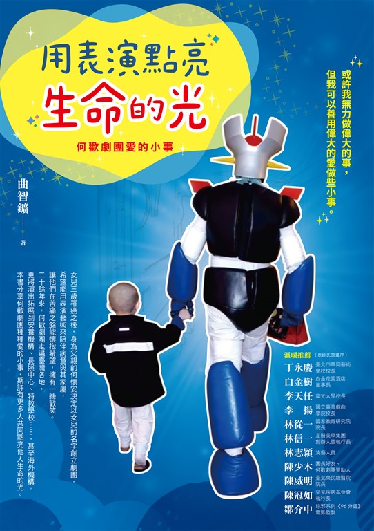 內容簡介 或許我無力做偉大的事,但我可以善用偉大的愛做些小事。作者曲智鑛在2020年受邀至何歡劇團分享,那是他和何歡劇團結緣的起點。他說他認識了懷安團長,認識團內的工作夥伴和表演工作者們,不知道為什麼,他對這一群人總是有股親切感。目前為止,何歡劇團已經累積超過八百場的公益演出,超過十九萬人次的觀眾人數,投入超過一千兩百位的表演工作者。絕大多數的人很難想像,是什麼樣的動力讓這個公益劇團能運作超過二十年?後來,何懷安團長主動詢問曲智鑛,希望有機會能跟他合作寫一本關於何歡劇團的書,曲智鑛立刻就承諾可以幫忙。奇妙,或許是磁場對了,這個人、這件事就有著這樣的魔力,讓人願意投入共襄盛舉。何歡劇團成立的初衷是安哥因女兒罹癌治療期間發願,女兒的名字何歡也就成為劇團團名。團長陪伴女兒在臺北榮總治療期間,他看見許多病友面對病痛的掙扎,深刻理解除了專業的醫療介入外,治療過程中的陪伴與心理支持更是關鍵,這樣的關懷不僅病人需要,陪病的家屬甚至醫護人員也都有需求,也因此,何懷安想到可以用自己擅長的表演來滋養這樣的環境,給予這些人力量,喚起他們對於生命的熱情和希望,持續保有治療的動力,於是,何歡劇團在2003年誕生了。對於曲智鑛來說,何歡劇團在透過表演與服務對象互動的歷程本身就是一種療癒。因為藝術就蘊含著治療的力量,藉由參與表演藝術可以探索自我、與外界互動,藝術創作的過程就是一場自我探索、賦能的旅程。美國藝術治療的先驅之一Edith Kramer認為藝術不僅能夠美化我們的生活,還能夠平復情緒上的動盪,提升我們對周遭世界的認知,從而達到情緒的淨化和自我認知的增強。所有參加者在參與何歡劇團的表演過程中,自我療癒自然而然地發生,而當表演結束時也代表著我們已經達到了治療的目標,對服務對象、對參與演出的表演工作者。思考及此,就更清楚知道為什麼何懷安團長能一直堅持到現在。本書希望記錄這些年來因何歡劇團而誕生的生命故事,認識這些義無反顧的劇團工作人員與表演工作者,以及在背後支持著他們的贊助人與家人,透過文字的書寫呈現不同服務場域中人事物的真實樣貌,讓我們有機會重新省思高齡化社會的重要生命議題,也希望本書付梓能幫助「善」的傳遞,就像團長常說的,「我們可以用偉大的愛來做些小事!」而這一件一件的小事就能成就無盡善的循環。【溫暖推薦】(依姓氏筆畫序)臺北市華岡藝術學校校長 丁永慶白金花園酒店董事長 白金樹華梵大學校長 李天任國立臺灣戲曲學院校長 李揚國家教育研究院院長 林從一星醫美學集團創辦人暨執行長 林信一演藝人員 林志穎團長好友、何歡劇團贊助人 陳少木臺北榮民總醫院院長 陳威明罕見疾病基金會執行長 陳冠如粽邪系列《96分鐘》電影監製 鄒介中何歡或許不幸在小小年紀得到了罕見疾病,但又何其幸運有這樣一個不僅愛她,還能推己及人發揮大愛的爸爸!如今能透過文字將這段過往歷史記錄下來也是美事一樁,特獻上一文給予祝福!——丁永慶(臺北市華岡藝術學校校長)我相信,無論身處何種人生階段,你都能在這本書中找到啟發與力量。願這本書成為更多人心中的明燈,激勵我們每個人,用自己的方式為世界增添一分溫暖與希望。——白金樹(白金花園酒店董事長)書中的故事,都是一篇篇關於勇氣、堅韌和愛的見證,讓我們相信,無論面對何種困難,只要心中有愛,就能照亮前行的道路。——李天任(華梵大學校長)……經營公益劇團更是難上加難,何歡劇團能夠堅持理想,走過劇團經營的躓踣與困乏,秉持表演藝術團體「傳愛行善」的初心,幫助更多人面對老病或重症時,仍可微笑勇敢向前行,不留遺憾,「圓滿生命」,殊為可敬又可賀。——李揚(國立臺灣戲曲學院校長)本書分享的不僅是一段段感人至深的生命故事,更是一份對愛與希望的無數見證。——林信一(星醫美學集團創辦人暨執行長)在書中第四章中有我與作者的對談,希望拋磚引玉,讓更多人願意認識何歡劇團,看看他們的故事。相信書中這些愛的小事能點亮你們生命的光。——林志穎(演藝人員)《用表演點亮生命的光》是對「用愛化解生命挑戰」這一主題的深刻詮釋。……不僅是一部劇團的成長紀錄,更是一部能激勵人心、傳遞正能量的生命之書。——陳少木(團長好友、何歡劇團贊助人)衷心感謝何歡劇團一路相伴,分擔醫護人員的辛勞,並為癌症病友與家屬帶來心靈上的力量。希望《用表演點亮生命的光》的出版,能讓更多人看見何歡劇團的故事,讓這份來自台灣的小愛生生不息。誠摯地將這本書推薦給大家!——陳威明(臺北榮民總醫院院長)讀這本書時,心裡總是暖暖的,想著社會上有團長跟團員們真好。……也希望世人看到這份心意,各自用各自的能力來愛這世界。因為有您,愛不罕見。——陳冠如(罕見疾病基金會執行長)《用表演點亮生命的光》這本書對我來說,承載著安哥和許多人對生命的熱情與盼望,希望這樣的善能一直傳遞下去,讓我們生活的這片土地更溫暖更有愛。——鄒介中(粽邪系列《96分鐘》電影監製)