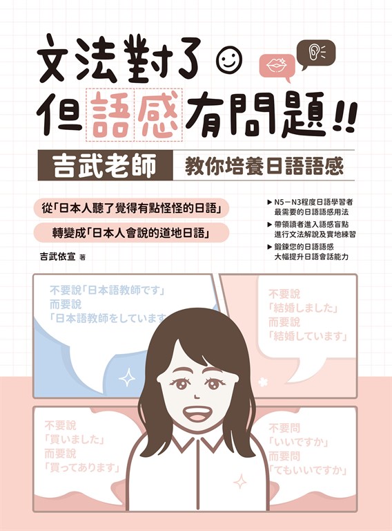 | 簡介 / | 文法對了,但語感有問題!:吉武老師教你培養日語語感 (電子書):台灣的日語學習者學了日語文法之後,認真地按照文法書內容照樣造句,雖然是套用正確文法,但是說出來的日 |
