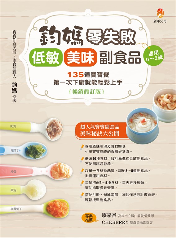 作者介紹 姓名:鈞媽寶寶作息天后·副食品職人一位平凡的職業婦女+全職媽媽,也是百萬部落格主和鈞媽御食堂的創立者。深信帶孩子應該是快樂,而不是痛苦,更覺得媽媽應該花更多時間陪伴孩子成長,絕不是在副食品身上苦惱。為了厭食不愛吃的孩子,潛心研究副食品,從分享到創立鈞媽御食堂,製作出真材實料又美味副食品,受到眾多寶寶和媽媽的歡迎、喜愛。