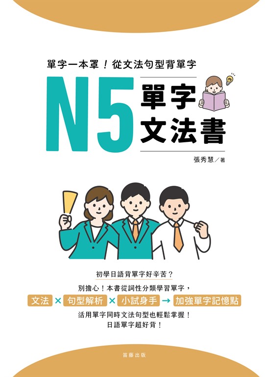 作者介紹 畢業於日本國立宇都宮大學教育學部中學校教師養成課程國語科(日文),中國文化大學新聞研究所。取得日本語能力測驗1級證照,文化大學日本語教師養成班結業證書。 在日本將近六年的求學過程中,教授的殷殷教誨及對日本語文學的熱愛,讓我大學生活過得十分充實。畢業回國後,先後在雜誌社、出版社擔任日文編輯及翻譯。而在工作之餘,也在學校家長成長營擔任日文老師,以家長為對象,教授基礎日文。之後,在參加文化大學的華岡興業基金會的日本語教師養成班,讓我學到了課程內容安排,教學活動設計等技巧。 目前在大學、語文補習班及企業擔任日文講師。從五十音開始,以活潑、淺顯易懂的方式讓學生能夠喜歡上日文。然後,再進一步學習更進階的內容。從接觸許多剛開始學習日文,對背單字感到無力的學生,讓我思考要如何透過句型將單字串聯起來,加強記憶點,讓學生更容易記住單字。所以才有出版此書的想法,希望能夠讓想要自學N5的人,在背單字能更得心應手。 著作:《日本人的哈拉妙招!日文熟語典》(笛藤出版) 翻譯作品:《北歐式的自由生活提案》、《開始享受啤酒的第一本書》、《賣化妝品給牛:頂尖銷售員的獨門待客術》、《醫食同源:彩色圖解93道健康美味家常食譜》等超過30本以上作品。