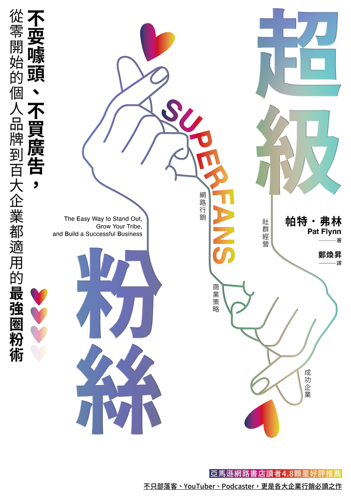 內容簡介 高人氣Podcaster教你抓住粉絲的心,增加品牌黏著度、打造鐵粉王國不只部落客、YouTuber、Podcaster,更是各大企業行銷必讀之作努力發布臉書貼文,按讚數還是寥寥可數?IG上Po出圖文並茂的動態,追蹤數仍裹足不前? 嘔心瀝血完成的YouTube影片,卻讓訂閱數不增反減?粉絲數固然重要,但若想增加訂戶、品牌黏著度,超粉數才是關鍵!臉書粉絲、IG追蹤者可能會喜歡你發的其中一篇貼文、顧客或許會因為喜歡某項品牌而購買產品,但所謂「超粉」,不只不錯過你的每一篇貼文,更會迫不及待地告訴他們周遭的人你的貼文多有趣;會盡全力幫忙宣傳作品、產品或任何事,把你的事情當成自己的事情,就像你的經紀人、公司的代言人一樣,擔心你有沒有吃飽穿暖、商品賣得好不好,彷彿你賺的錢他也能分一杯羹。但是,超粉在哪裡?沒有人會在一開始關注你的瞬間就成為超粉。累積超粉絕對不是難事,只是需要訣竅。跟著高人氣Podcast節目「聰明被動收入」主持人帕特,運用粉絲金字塔三步驟,一步步拉攏他們成為你的超級粉絲。從路人甲到活躍者讓想接觸的目標受眾喜歡上你,不自覺地向他人分享或發現你與眾不同的地方。首先,你要學習他們的用語,再用他們熟悉的文字與他們對話,引起他們的注意。當然,你也必須要讓他們淺嚐一下訂閱你的服務或使用你的產品,可以得到什麼樣的好處。從活躍者到緊密社群接下來,利用八種策略(由他們來決定、送作堆)建立連結與歸屬感,讓那些已經可以跟你輕鬆溝通的受眾自動靠上來,打造一個緊密社群。在社群裡,成員彼此間談笑風生、互動良好,如同大家庭般。他們會提供最真實的建議和反饋,幫助你的事業蓬勃發展。從緊密社群到超級粉絲最後,想成為他們的最愛,你必須做些別人做不到或不會做的事。VIP體驗、意想不到的一對一互動,讓你的粉絲覺得倍受尊榮,從此死心踏地,成為一輩子追隨你腳步的超級粉絲。無論您是剛起步、害羞的YouTuber,還是各大企業的行銷小編,切記,粉絲是金,但超粉是命,與其花錢在廣告上或想破頭製造噱頭、話題,你更應該花時間在這些人身上。因為,一旦他們成為你的超粉,不論世界是正著轉還反著轉,他們將永遠死心踏地且無怨無悔。想建立成功的事業不代表你得改變整個世界,你需要改變的只有某些人的世界。【本書特色】1. 本書分成五大部分、共19章節,除了以循序漸進的方式告訴讀者如何培養粉絲和吸引顧客外,在每個章節的最後都有應用練習,加強實用性。2. 文字簡潔有趣,加上作者幽默、輕鬆的口吻,為內容增添趣味性。當中內容穿插技巧說明、圖片與實際案例,兼具知識和實用性,增添說服力。3. 對數位行銷、商業策略與客戶管理有興趣,或正從事相關職業而想要加強圈粉技能的讀者,在閱讀完本書之後能獲得嶄新且全面的見解。【專業推薦】Mr. 6 劉威麟/網路趨勢觀察家思葒(S編)/自媒體社群事業顧問娜塔蝦/自媒體與數位行銷專家許景泰/網路連續創業家陸⼦鈞/詮識數位執行長電商⼈妻 Audrey/IG社群玩家 劉昊恩/PIXNET 產品策略副總經理——依姓氏筆畫排序——