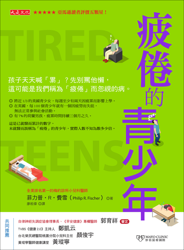 產品目錄 推薦序一 電器故障不見得是電器出問題,身體器官的毛病也是如此/郭育祥推薦序二 當疲勞問題成為流行,可能影響一輩子/鄭凱云序 言 我的孩子為什麼這麼容易喊累?第一部:如同流行病的慢性疲勞第1章:比課業學習更重要的事:睡好覺第2章:這些病,引起身體無法解釋的疲勞第二部:患者的身體,究竟出了什麼問題?第3章:做過各種檢查,就是找不出原因第4章:自律神經失調,體內溝通不良第5章:身體有個微小的能量工廠,粒線體第6章:學習優等生的撞牆症候群第三部:POTS——姿勢性直立心搏過速症候群第7章:青少年疲倦的其中一種可能第8章:他們沒有特別想睡,但就是沒有活力第9章:這會遺傳嗎?有可能傳染嗎?第四部:完全康復?當然有可能!第10章:如果你親自來找我,我會這樣幫助你第11章:怎麼吃、怎麼穿、怎麼動,你會更快復原?第12章:可能有幫助的藥物治療第13章:大多數的患者都能康復第14章:就算有症狀存在,仍能正常過日子結 論 因疲倦而虛弱的蘿拉,現在已是醫學院學生致 謝