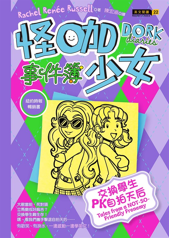 內容簡介 榮登《今日美國報》2017年度百大暢銷書!全系列長踞《紐約時報》暢銷書排行榜288週!(週數持續增加中)全球銷售突破45,000,000冊!大敵當前,死對頭立馬變成好麻吉?交換學生難生存!嘿,看我們攜手擊退自拍天后……有歡笑、有淚水,一邊感動一邊學英文!內容簡介死對頭麥肯絲轉學了,妮琪原以為可以逃離魔掌,從此過著風平浪靜的生活,沒想到在為期一週的交換學生計畫中,她居然被分發到麥肯絲的新學校──北漢普敦山莊國際學校。忐忑不安的妮琪來到北漢普敦山莊,這才發現一山還有一山高:囂張跋扈的校園女王蒂芬妮掌控了整個學校,聯合正妹團女生霸凌麥肯絲,甚至嫁禍給妮琪。自拍成癮的蒂芬妮還打算搞垮科學社,讓自己創立的自拍社取而代之。看不下去的妮琪正義感大爆發。為了洗刷自己的冤屈,也為了科學社的新朋友,妮琪決定與宿敵麥肯絲攜手對抗蒂芬妮。敵人的敵人就是朋友!同是天涯淪落人的妮琪和麥肯絲,是否能打贏這場硬仗、為自己掙得一席之地呢?閱讀英文小說,是增進英語能力最自然的方法!大家都知道,「英文閱讀」是增進英語能力最自然的方法。然而,在選擇閱讀素材時,讀者不但常有「文學名著太遙遠、童書繪本太簡單、英文新聞太嚴肅」的困擾,也常因內容不夠貼近生活、情節過時或用字太難,以致於缺乏「往下閱讀」的樂趣,讀起來成效不彰,甚至半途而廢。《怪咖少女事件簿》是一本用字淺顯的生活小說,幽默逗趣的情節,完全沒有傳統教材的枯燥乏味。讀者可在閱讀過程中無形中學會單字、熟悉句型用法,並從字裡行間貼近美國青少年的生活、開啟了解美國文化的視窗。 《怪咖少女事件簿》(Dork Diaries) 全系列得獎紀錄 長踞《紐約時報》暢銷書排行榜288週 2010, 2013年Children’s Choice Book of the Year Awards美國童書協會「兒童評選最愛童書獎」 2011年Nickelodeon Kids’ Choice Awards全美兒童票選獎「最喜愛的書」提名 2014年Milner Award for Children’s Literature「最喜愛的作家」 2015年NAACP Image Award「傑出童書獎」 全球銷售突破45,000,000冊 全球售出36國版權、翻譯成36種語言本書特色用字淺顯易懂生活化的用字與表達法,文字流暢不艱澀,充分享受閱讀英文小說的樂趣。情節引人入勝幽默逗趣的情節設計,從字裡行間了解美國文化,貼近美國青少年的生活。插圖生動有趣令人莞爾一笑的生動插畫,增加閱讀樂趣,提升學習效果。