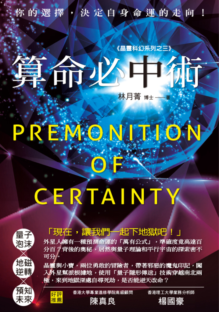 內容簡介 量子泡沫x地磁逆轉x 預知未來你的選擇,決定自身命運的走向! 「現在,讓我們一起下地獄吧!」 外星人擁有一種預測命運的「萬有公式」,準確度竟高達百分百?背後的奧秘,居然與量子理論和平行宇宙的探索密不可分。 晶靈與小寶,兩位勇敢的冒險者,帶著邪惡的魔鬼印記,闖入外星幫派根據地,使用「量子隱形傳送」技術穿越南北兩極,來到地獄深處自尋死劫,是否能逆天改命? ✦每一次翻頁,再一次理解「命運」✦ 《算命必中術》是一部關於命運、自由意志和人性深層選擇的科幻巨作,它既是一場跨越宇宙的冒險,也是一場心靈的深刻旅程。 這不僅是一本小說,更是一場穿越奇幻與現實的思維之旅,讓我們在每一次翻頁後,對「命運」這個古老而永恆的主題有更深的理解。 ✦以量子力學,破解命定論與自由意志之間的矛盾✦ 【晶靈科幻系列】持續追探,人在神創造的平行宇宙中,各個命定的人生分支上,如何能以善惡之心,以自由意志去走一條合適的路?人類又是否能善用被賦予的自由意志選擇權,消弭戰亂,平息世間所有紛爭? 當我們透過小說,穿過未知的世界的裂縫,這些意猶未盡的故事,懸念挑動著隱藏的情感,所謂精準的命運和未來,也許一直在自己手上……。 本書特色 ☉結合科學與奇幻元素:巧妙融入量子物理學、平行宇宙等當代科學理論,打破虛構與現實的邊界。 ☉多層次的哲學思辨:探討善與惡、命運與自由意志的哲學問題,反思人生每一個抉擇和未來的可能性。 ☉科幻文本的宇宙視野:延續了前兩本小說的世界觀,擴展至全宇宙範圍,揭示宇宙與命運之間微妙的關聯。 ☉懸念與情感的交織:充滿懸念的故事,延續情感線索,更多層次的細節和人物變化,留給讀者無限的想像。 ✢本書強力推薦給✢ ──解謎、探險與推理的愛好者 ──對傳統五術之學、藝術和命術感興趣的朋友 ──喜好神秘學、外星世界、科幻小說的讀者 好評推薦 作者巧妙地將前兩集的伏筆與謎團一一解開,帶領讀者走向故事的結局。書中不僅有精心設計的大型場景,還替故事中超時代科技的科學解釋,增強了故事的真實感。 《算命必中術》的書名緊扣命運主題,引發讀者思考:命運是天定,還是由人掌控?我鄭重推薦林月菁博士的這部新作,相信它會帶給讀者一場充滿想像力與思考的閱讀體驗。──陳真良│香港大學專業進修學院高级顧問 【晶靈科幻系列】故事由一連串夢境展開,帶領讀者進入小寶與晶靈的奇幻探險與愛情旅程。初讀時,情節看似天馬行空,但細細品味,卻能發現其中的嚴謹結構,每個伏筆與轉折都環環相扣,絲毫不顯突兀。 本書也融入了香港本地特色,例如西貢結界、二戰遺址、鳳凰山日出等,讓讀者在探索幻想世界的同時,也能感受到熟悉的文化背景。──楊國豪│香港理工大學業務分析師