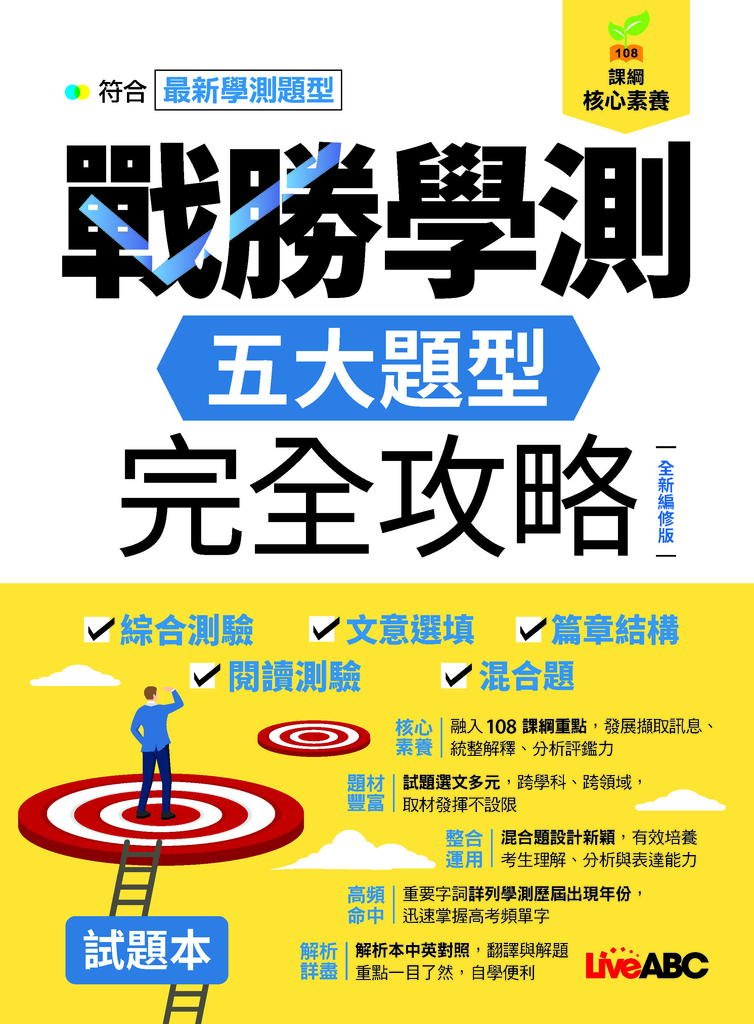 商品描述 | 戰勝學測 五大題型完全攻略(全新編修版) (電子書):最新學測題型!!掌握關鍵致勝分,英語學測輕鬆過!<核心素養:融入108課綱重點,發展擷取訊息、統整解釋、分析評鑑力。< |