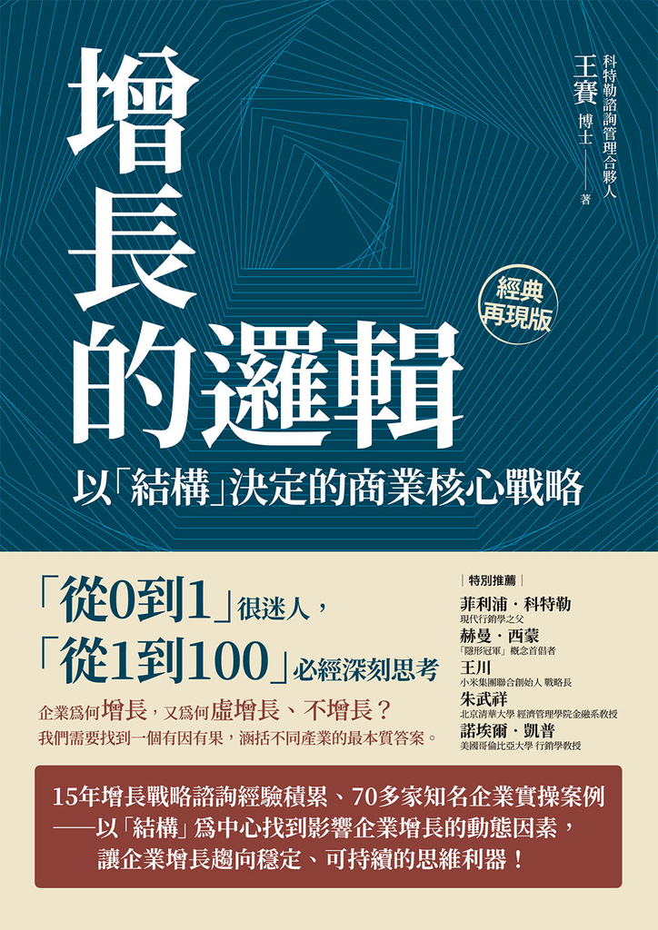 內容簡介 「我一直認為,我的商業理論中理性結構的底座是市場行銷和戰略這兩大領域,恰巧這兩座山峰都建立在經濟學的理性基石之上。然而不得不說,這兩門學科的發展在實踐中碰到了窘況。戰略過於宏觀,行銷過於微觀,而兩者融合出的增長理論似乎可以解決問題。如今的商業理論中有太多『雞湯』與玄學,科學性和原理性似乎不夠,而我將其推向結構,將麥可.波特的思維方式貫穿於增長理論的架構中,以結構為中心,以情境與本質為基礎,致力於讓好理論指向『手起刀落』的好實踐。」企業為何增長,又為何虛增長、不增長?我們需要找到一個有因有果,涵括不同產業的最本質答案。「科特勒諮詢管理」合夥人 力作,多家《財星》500大公司CEO私人顧問親撰的策略利器《增加的策略地圖》最新續作!15年增長戰略諮詢經驗積累、70多家知名企業實操案例──以「結構」為中心找到影響企業增長的動態因素,讓企業增長趨向穩定、可持續的思維利器!不確定時代企業增長的必然解,70多家著名企業驗證過的企業增長基礎框架。本書將指出企業如何「從高度不確定性的環境中尋求某種確定性的判斷」,試圖釐清市場博弈中趨向必然的那些要素組合。傳統的管理策略規劃中有諸多因素經常定義不清,或只是部分代表了企業家或者決策者的想法,但這些想法並非指向一種必然性。本書主張:決定一家公司增長趨向的必然解,是結構。擁有豐富經驗的CEO管理顧問作者王賽以「結構」為中心,通過對企業增長進行解剖,從更微觀的視角找到影響企業增長的動態因素,指導不同條件下的企業去調整自身的要素組合結構,構建起業務、客戶、競爭、差異化、不對稱、合作和價值七大子結構和增長圖譜,從而在不確定時代中建立企業增長的結構底牌,讓企業的增長趨向穩定、可持續,為長遠發展與基業長青奠定基礎。最終,本書將試圖拋出一個建立增長理論的七種框架,回答「什麼叫真正的增長」,一間企業的增長是依托於總體經濟、中觀模式抑或是微觀營運?更重要的是,企業如何認清「什麼是對的增長」!│多位世界商學界領袖人物推薦!│菲利浦.科特勒/現代行銷學之父,美國西北大學商學院教授:本書為企業界提供了深度和實操的增長戰略框架。赫曼.西蒙「隱形冠軍」概念首倡者,定價學三大模型之一「西蒙模型」的創立者:與隱形冠軍一樣,增長是「快與慢的藝術」,在這個特殊的時間節點,中國企業家若能靜下心來思考未來的增長結構,便可以不斷攀越自身的「天際線」,我們期許各個賽道中通過使用本書「增長結構」湧現出來的新型冠軍,這非常值得期待。我想,這也是王賽先生這本新書對於企業家的意義。諾埃爾.凱普 大客戶行銷之父,美國哥倫比亞大學行銷學教授:穿透本質的鋒利之作!王賽先生從新的視角,給出了系統增長戰略指南,這本極具跨界思維的書將帶領你走進破解市場增長迷思的啟迪之旅。陳朝益 英特爾中國區創始總裁:王博士的前著《增長的策略地圖》曾讓我大開眼界。這本新書《增長的邏輯》好似一座「天梯」,王博士引導我們建造適合自己的梯子,在「新常態」的世界裡,安全穩健地邁向自己新的增長目標。韋瑋/麥肯錫商學院聯合創始人及首任院長,SAP大中華區前副總裁:增長是所有企業都關心的核心議題,成功的增長既要在宏觀層面有清晰的頂層設計,更要在微觀層面有極強的可操作性。數位化正在席捲所有行業,企業的競爭邊界不斷被打破,這本書提出關於增長的七大子結構,不僅揭示了增長戰略的本質,也是企業應對當前面臨的增長挑戰和找到增長路徑的更優解,提供了增長的全盤「棋譜」。張堅/思科(中國)前副總裁,中國惠普公司政府事業部前總經理:在VUCA(易變、不確定、複雜、模糊)時代和商業世界劇烈變革的今天,企業和部門的發展和增長,幾乎是每個企業管理者都要面對的話題。增長的概念不僅商家需要關注,我們每個人也需要關注。你需要思考你的增長是「好增長」還是「壞增長」。王賽老師的這本書可以幫助你釐清思路,它從不同的視角向大家呈現了增長的結構。張曉泉/香港中文大學商學院教授、副院長,超量子基金創始合夥人,《數位躍遷》作者:人們常常探討創業難還是守業難,很多創業公司在完成了從0 到1的拚搏之後,感到的並不是成功的喜悅,而是對未來的迷茫:我現在怎麼辦?而成熟的企業也深知不進則退的道理。這個千古之問其實缺失了過程中最重要的一個環節:怎麼從1 增長到100 呢?無論是創業還是守業,都要解決「如何增長」的難題。王賽的這本書讓人讀完如沐春風,不僅僅因為他多年的諮詢經驗給他帶來的商業洞察力,也由於他深厚的文化功底給全書賦予了一種美感。魯秀瓊/貝恩諮詢公司全球專家合夥人,可口可樂公司大中華區前行銷長:企業界久違的深度作品!在言必談增長的今天,《增長的邏輯》一書不做那些「流量、網紅」等膚淺行銷的文章,而是從原理級別將內功心法娓娓道來,稱得上是兼具系統性與操作性的「屠龍術」,尤其推薦各類新興企業CEO深度閱讀。尹靖/融創控股數位化轉型總經理,微軟中國諮詢服務部前數位長:數位化轉型是企業面對不確定環境時保持增長、迎接挑戰的方法。幾乎所有的數位化轉型方法論都沒有回答如何確定增長的方向,王賽的《增長的邏輯》則給出了很好的答案。推薦關注數位化轉
