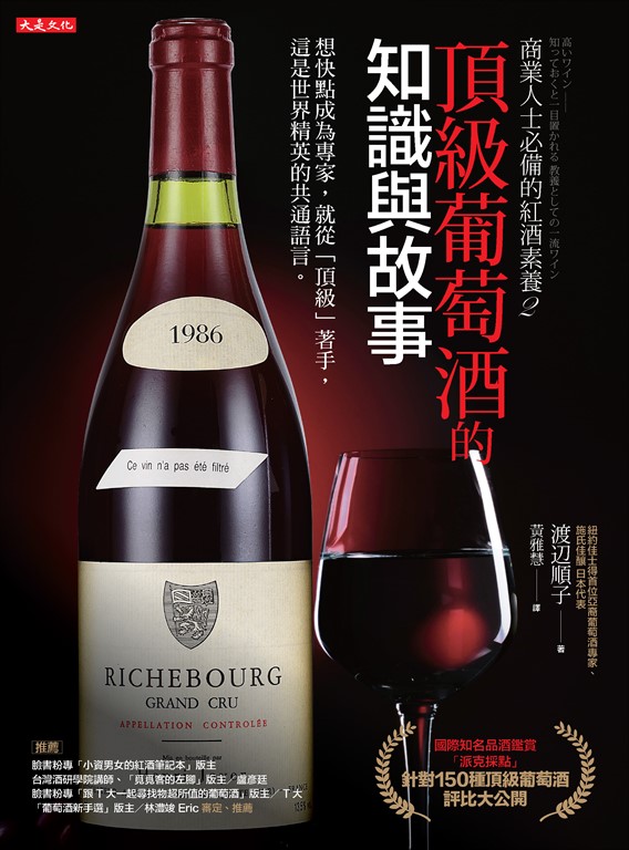 作者介紹 【作者介紹】渡辺順子Premium Wine股份有限公司董事長。1990年代赴美。在因緣際會下接觸頂級葡萄酒後,從此與葡萄酒結下不解之緣。之後,遠赴法國留學。2001年,任職於國際老字號拍賣公司「佳士得」的葡萄酒部門,成為紐約佳士得首位亞裔葡萄酒專家。任職期間表現亮眼,負責為各國富豪與企業經營者介紹、講解拍賣精品。此外,也為頂尖的商業人士開設葡萄酒講座。2009年離職後,回日本自創Premium Wine股份有限公司,致力於推廣葡萄酒拍賣文化。同時,鎖定亞洲的富裕層或律師等舉辦葡萄酒研討會。2016年就任於以紐約及香港為據點的老字號拍賣行施氏佳釀(Zachys),擔任日本代表。負責日本衛星直播拍賣會。提供拍賣委託、競標與頂級葡萄酒之諮詢服務。著作另有《商業人士必備的紅酒素養》(大是文化出版)。【譯者介紹】黃雅慧 兼職譯者,熟悉臺、日、中三地貿易模式與工廠運作,具備商業實務經驗,翻譯領域涵蓋電子、通信、化學、防災與建築等產業,目前旅居日本。