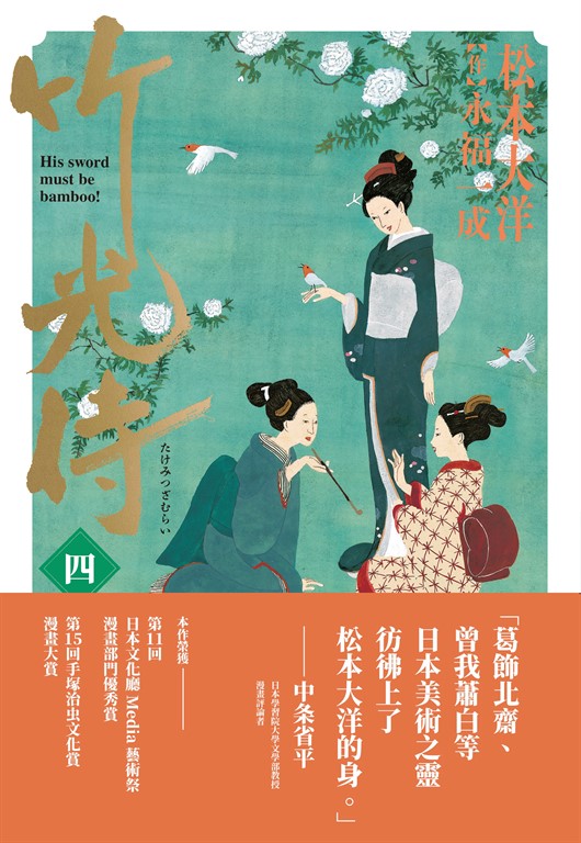 內容簡介 ★ 天才的進化沒有極限!松本大洋再次自我超越的不朽傑作。★ 華文世界讀者跪求十年,首度中文化!★ 中文版收錄作者為海外版特別繪製的「背景解說圖文」。瀨能宗一郎做了一個夢,尚在人世的母親現身其中……「你被某人附身了,帶刀就當不成人了吧。」「你將步上父親的後塵。」「身處此世,卻非此世之人——這件事,你要銘記在心。」《竹光侍1、2》出版後,精采的筆觸和分鏡,讓許多創作者書迷直說「一頁要看好久,一本要看上好幾天捨不得看完。」在第二集出現、養了隻老鼠「飯」的恐怖殺手木下真之介,在第三集中會引起多大的波濤,和主角瀨能宗一郎正面對決又會是何等光景?松本大洋手下無劣作,每一部作品都超越前一部,不,應該說每一部作品都是當階段的最高傑作。切莫錯過首度中文化、意境與畫面都臻於詩境的《竹光侍》!—————————————————————————————————「在下總是會引來災禍,父親說這是血緣所致。」——瀨能宗一郎故事以江戶時代為背景,有著細長狐狸眼的神祕浪人瀨能宗一郎來到江戶,落腳長屋。宗一郎看來一派悠閒,實際上是個有著不為人知過去的厲害劍士。故事透過能仍看見「精怪」的小童堪吉之眼來看宗一郎,並由多場劍術對決串連全篇。瀨能深知自己有被詛咒的資質,會招來戰鬥與殺戮,因此捨棄真刀,改配竹刀。日文中的「竹光」指的便是「竹刀」,此即為作品名由來。《竹光侍》為松本大洋和好友永福一成合著,是松本大洋首次和他人合作的漫畫,也是他首次描繪日本時代劇的作品,在他三十年來創作生涯中,是非常特殊的一套作品。風格成熟灑脫,評價非常高。作者自己的激動也躍然紙上。 《竹光侍》以充滿愉悅的筆法描寫了江戶時期各種庶民生活風景,盛世氛圍彷彿帶著微醺,也像無邊春色般使人雀躍。書中從宗一郎的佩刀「國房」、馬匹、長屋中的貓群,都有豐富的內心話,非常有趣。將一隻眼睛畫在臉外的不羈畫法,更是讓許多漫畫家讚嘆。例如一向推崇松本大洋的尾田榮一郎就曾在畫集《One Piece Color Walk 5: Shark》的對談中說:「《竹光侍》這部作品真的很帥……尤其是台詞與氣氛,真的是讓我覺得很棒。再加上另一隻眼睛跑出來的表達方式、還有拿著刀的手都很帥。當我看到主角殺死斬人試刀兇手時,還覺得『真希望自己也能夠畫出這種圖……』」。松本大洋為切身感受江戶時代的氣氛,創作時參考不少浮世繪畫作,還嘗試點蠟燭生活以感受江戶時代極為漆黑的晚上氛圍。此外,由於原作永福一成喜歡女性角色,因此擅長畫老人和小孩、鮮少描繪成年女性的松本,難得地在書中描繪了女性要角,以及女性角色對主角宗一郎產生的幽微心情。本作品在小學館週刊《Big Comic Spirits》連載時期,以「連載三個月、休刊三個月累積稿量」的進度來繪畫。比較不受到時間限制,因此悠閒的感覺也反應在畫面之中。他在前述和尾田榮一郎的對談中自剖:「我會配合故事的內容來改變畫風。對我來說,漫畫的圖是用來表現故事發展的一個道具,雖然我不會對這一點特別執著,但我在畫《竹光侍》的時候,想透過圖來牽引作品的想法可能真的很強烈。」不管你是否是松本大洋的死忠讀者,本書都不容錯過。《竹光侍》榮獲日本重量級漫畫大獎肯定:2007年第11回日本文化廳Media藝術祭漫畫部門優秀賞2011年第15回手塚治虫文化賞漫畫大賞松本大洋談《竹光侍》:「永福先生很擅長寫開心的故事,我覺得能由他來寫原作小說真的是太好了。……畫這部作品不等於『端出自己的東西』,所以感覺非常新鮮,新挑戰也帶給我很大的熱情,連自己都覺得:『這部時代劇漫畫怎麼會這麼棒啊!』」(原載於《松本大洋本》,小學館)永福一成談《竹光侍》:「透過這韻味有如『鳥獸戲畫』的江戶繪卷,松本大洋再度開拓了漫畫表現的新境界。……大洋甚至說《竹光侍》是他自己的最高傑作,我聽了非常感謝,不過也有點不同意這個說法。松本大洋的最新作品永遠都會是他的最高傑作。」(原載於《松本大洋本》,小學館)名家推薦:高橋留美子(知名漫畫家):「令人心曠神怡的和風繪畫世界。」中条省平(日本學習院大學文學部教授、漫畫評論者):「松本大洋畫到武戲時,抽象簡化的描線彼此交疊、變換自在,令人聯想到葛飾北齋,大膽無敵的視角與構圖則神似曾我蕭白的水墨畫。日本美術之靈彷彿上了他的身。 ……《竹光侍》開頭以充滿愉悅的筆法描寫了文化文政時期的江戶,盛世氛圍彷彿帶著微醺,如無邊春色般使人雀躍。作者自己的興奮之情也躍然紙上。」(出自《松本大洋本》)川貝母(插畫家):「《竹光侍》筆觸乾淨俐落,在傳統的繪畫中又找出新的表現方式。角色的塑造也依然鮮明得惹人關愛,就算沒有畫出來也覺得正默默地在鏡頭以外的地方生活著——這是松本大洋最厲害的地方。」徐至宏(插畫家):「松本大洋在《竹光侍》中把浮世繪技法運用在漫畫場景中,光是為了欣賞每一格分鏡的構圖,我就可以發呆良久,所以需要很多時間才能看完一本。最恐怖的是看完後總會在心中質疑自己過去到底都畫了些什麼?帶著尊敬崇拜的感覺欣賞完畫風後,才意識到自己早就跟著主角進入到劇情當中。大師到底要進化到什麼境界呢?強烈推薦大家《竹光侍》!」鄧彧(紙上行旅)(插畫家):「《竹光侍》跳脫了
