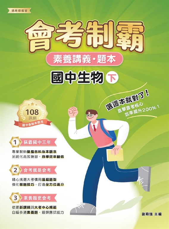 | 簡介 / | 素養講義‧題本:會考制霸 國中生物(下)[本書適用國中會考](FG5562) (電子書):本書涵蓋生物學的核心領域,內容從基礎概念延伸至應用層面,幫助學生建立完整的生物學知識 |