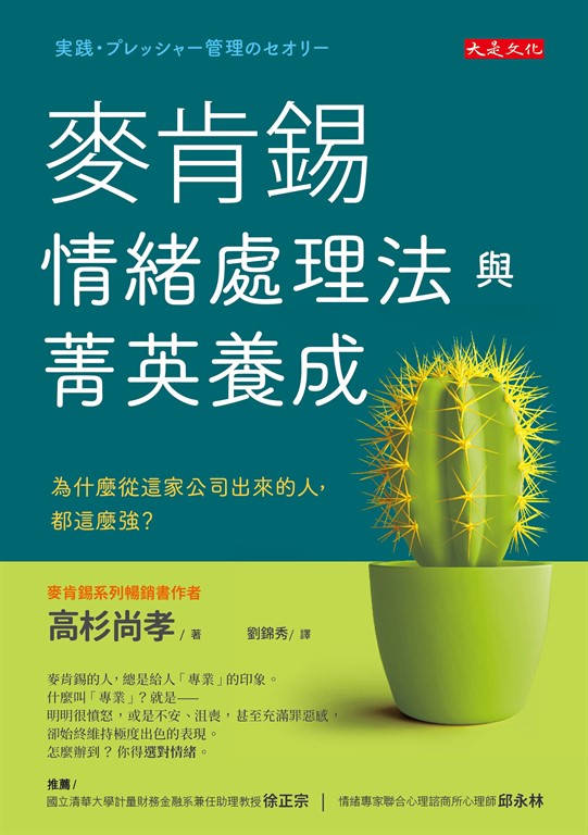 內容簡介 為什麼經過麥肯錫歷練的人,都這麼強?因為專業。 什麼叫「專業」?高杉尚孝說,專業就是——明明很憤怒,或是不安、沮喪,甚至充滿罪惡感,卻始終維持極度出色的表現。怎麼辦到?要成為出色的人,你得懂得「選擇」情緒。 繼《麥肯錫寫作技術與邏輯思考》、《麥肯錫問題分析與解決技巧》兩本暢銷書後, 高杉尚孝告訴你:一個人,要怎麼選擇情緒,然後處理情緒,讓自己表現始終出色。 為什麼是「情緒處理」,而非情緒管理? 高杉尚孝說,過去大家都誤會了,情緒問題其實非關情緒, 而是一種思考的技術。 不能光靠正向思考(光說想開點、對自己喊加油,是沒用的), 而是要區分:好的負面思考與壞的負面思考, 然後將好的留下、壞的丟掉。高杉尚孝會告訴你,為什麼「不高興、內疚、不安、悲傷」是好的負面情緒…… 怎麼做?只要透過以下四個步驟來自行練習,你就是情緒處理的高手: ◎預防壞思考,你得先認識它: 壞思考的每句話,聽起來都很積極:我一定要……、我非……不可、我絕對不能……。這就是可怕的絕對思考,會讓你即使成功了也不會感到喜悅。為什麼? 不曾扛起,就別說「放下了」:想想看,你有多常說 : 算了,再努力也不會有結果、反正制度就是這樣,算了……。這是無所謂心態,也是一種壞思考。 ◎問以下四個問題,可以幫你擺脫它:1. 這樣想,符合邏輯嗎:我一定、絕對、非得……真的有這樣規定嗎? 2. 這是事實,還是個人的過度想像:以前真的發生過嗎?別自己嚇自己。 3. 遵守原則能讓我得到好處、或只是自找麻煩:發脾氣有用嗎?還是為了找別人麻煩。 4. 有選擇的彈性嗎:如果沒有,是不是代表你的想法過度自信? ◎人生沒有「絕對」,但別弄丟「希望」:把你的絕對思考、無所謂思考改成 最好能…… 希望能…… 如果可以……就好了,不但能減輕壓力,最重要的是「希望」可以燃起你的熱情。 ◎最後,選對的負面情緒,就能啟動好思考: ‧生氣自己?火大別人?其實,你該選擇不高興而願意和對方交涉 ‧不安與擔心,該選哪一個?你應該因為「擔心」而做足準備。 ‧打擊太大好沮喪?你要釋放悲傷才能留住熱情。 高杉尚孝並提供親自輔導的案例,工作場合發生的所有「情緒」問題, 都有辦法可以「處理」,像是: 當著大家的面,被主管罵…… 優秀的部屬,突然要辭職?無法答應同事的要求? 害怕上臺報告,卻錯失大展身手的好機會, 以為今年一定會當上主管,晉升名單卻沒有我! 創業失敗,人生都毀了…… 分析錯誤的情緒選擇與思考方式,並提供有效的解決之道。 多數企業喜歡用有經驗的,但麥肯錫更愛招募沒經驗的職場素人,為什麼? 因為,如果被情緒綁架,能力再強也沒用, 他們有一套明確的情緒處理與菁英養成法, 能在極短時間內,把素人變菁英。
