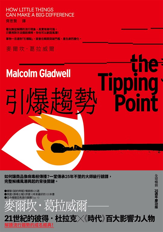 內容簡介 如何讓商品像病毒般傳播?一堂傳承25年不墜的大師級行銷課,完整解構風潮興起的背後關鍵。21世紀的彼得.杜拉克 ╳《時代》百大影響力人物──麥爾坎.葛拉威爾──解讀流行趨勢的成名經典!★蟬聯《紐約時報》暢銷榜425週★英國《泰晤士報》評選10年來最好的100本書★迄今穩踞亞馬遜行銷類Top 10看似無從解釋的流行現象,其實有跡可循。只要用對方法撐起槓桿,你也可以創造風潮!事物一旦達到「引爆點」,就會在瞬間突破門檻、產生劇烈變化。「流行」是怎麼產生的?為何有些風潮能夠異軍突起,有些則否?沒沒無名的小說家為什麼突然竄升為暢銷作家?紐約市90年代中期的犯罪率為什麼突然滑落?青少年吸菸的風潮為什麼一發不可收拾?「流行」一詞所代表的似乎是善變與盲目,但葛拉威爾敢於挑戰混沌不明,將「流行」抽絲剝繭,使原本看似無從解釋的流行現象,變得有跡可循。在本書中,葛拉威爾觀察重大的社會變遷,分析時尚、教育、犯罪、企業管理、自殺、吸煙、美國獨立革命的歷史,找出這些變化來得又快又急的原因。他指出,一個觀念、行為、訊息或產品的傳播擴散,其實就像病毒一樣,在達到「引爆點」的瞬間,就會蔓延開來,甚至逆轉形勢。一位病人可以掀起一場流行性感冒;少數人逃票或塗鴨,可以引爆犯罪風潮;一位滿意的客人可以經由口耳相傳後,讓一家新餐館高朋滿座。現代許多社會問題的本質就像人類史上各種瘟疫一樣,隨時可能因為微小變數而扭轉情況;要解決這些問題,關鍵就在於找出這個逆轉點。只要掌握引爆趨勢的三大原則──「少數原則」、「定著因素」、「環境力量」,每個人都可以創造或發動一場社會流行運動,也可以引導集體行為向上提升!最重要的是,本書潛藏一個希望無窮的觀念──一旦掌握引爆點,加上位置恰當的槓桿,任何人都可以影響地球上的任何角落。各界一致推薦丁菱娟/世紀奧美公關創辦人王伯達/「王伯達觀點」總經理王浩威/精神科醫師、暢銷作家林長揚/企業課程培訓師、暢銷作家張修修/YouTuber、Podcaster楊士範/The News Lens關鍵評論網媒體集團內容長楊斯棓/方寸管顧首席顧問、醫師齊立文/《經理人月刊》總編輯劉奕酉/《看得見的高效思考》作者鄭緯筌/《內容感動行銷》作者(以上依姓名筆畫順序排列)國際盛讚「由於在眾多產品與訊息中,能夠脫穎而出的,通常都有「不可預測性」這個共同點,《引爆趨勢》的價值,便在於試圖去分析成功創造風潮背後的關鍵因素。」──齊立文/《經理人月刊》總編輯「葛拉威爾拆解了引爆點,他說服我們:「有時候我們需要簡單行事,走捷徑,小動作就有大轉變。」──楊斯棓/方寸管顧首席顧問、醫師「人人都在預測未來,人人都想比別人更早掌握未來,甚至在這當中捕捉到可能的財富。葛拉威爾的《引爆趨勢》從公共衛生流行病學的角度出發,在這領域又跨出了一大步。」──王浩威/精神科醫師、暢銷作家「別將個人品牌變成煙火,只有一瞬間的燦爛……利用洞察、嘗試、培養,持續累積作品與知名度,讓個人品牌不斷發光,而這本《引爆趨勢》當中所提到的三大原則,能讓我們少走很多冤枉路。」──林長揚/企業課程培訓師、暢銷作家「拜此書所賜,讓我深刻地感受到──一個平常看起來微不足道的觀念或訊息,卻可能像空氣中看不見的病毒一樣,在達到「引爆點」的關鍵瞬間蔓延開來,甚至逆轉形勢。」――鄭緯筌/《內容感動行銷》作者「本書令人愛不釋卷,書中提出的觀念會影響所有喜歡思考的人,以全新方式看待這個世界。」──麥克.路易士Michael Lewis/《魔球》、《大賣空》、《橡皮擦計畫》作者「一本既時髦又帶來希望的書,正如書中形容的概念一樣簡單明瞭且典雅優美,卻也充滿社會力。凡是關心社會如何運用、人類如何改良社會的人,都應該閱讀本書。」──史狄芬諾波洛斯George Stephanopoulos/美國廣播公司華盛頓支局長「能夠改變你看待所有事物方式的書不多,《引爆趨勢》是其中之一。書中解釋人類各種行為的原因,作者葛拉威爾都以聰明智慧一一為讀者釋疑。」──托賓Jeffrey Toobin/CNN資深法律分析師「時下輿論正在檢討犯罪及失序的成因,以及應該如何改進,本書提出重要的觀念,是必讀之作。」──布萊頓William Bratton/前紐約市警察局長「葛拉威爾在《引爆趨勢》提出一個打動人心且切實可行的理論。他研究書中各項主題的方式是本書最誘人之處──點明能夠造成大轉變的小動作。」──《紐約時報》「就像在製造某種傳言,你很難不被葛拉威爾說服。不僅因為他集結吸引人的事實來支持他的論調,他也善於以此解釋人類行為。」──《商業週刊》(Business Week)「這是一本能讓你以不同觀點看世界的迷人之書。」──《財星》(Fortune)雜誌「沒有人能像葛拉威爾,以如此優雅且具影響力的方式,成為商業思想的領導者。」──《快公司》(Fast Company)「本書被作者滿腔的好奇心所推動,葛拉威爾把複雜理論化為清晰、優雅的文字,帶領讀者在不同的領域中持續地律動。」──《舊金山紀事報》(San Francisco Chronicle)「引人入勝的報告,極有價值!」──《芝加哥論壇報》(Chicago Tribune)「非常值得一讀!」──《西雅圖時報》(Seattle Times)