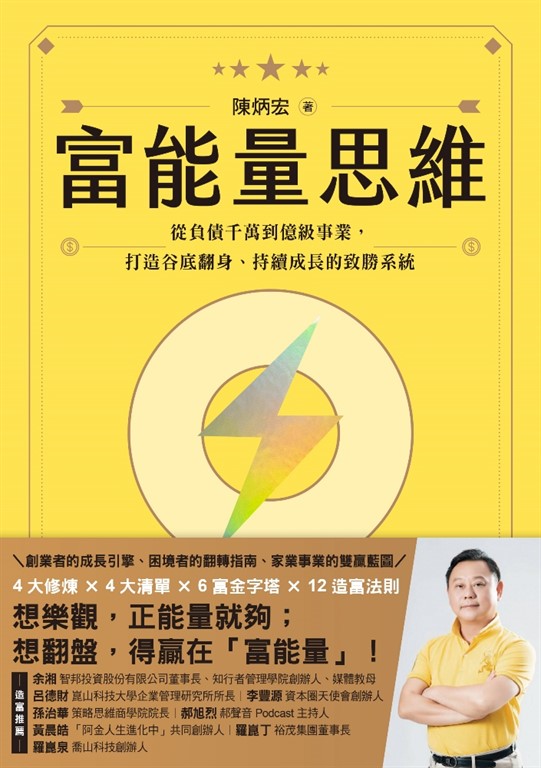 內容簡介 有一種能量,能讓你低谷翻身、順境壯大;讓事業與家庭同步成長;不論行業、不怕挑戰,都能發揮影響力;那就是──富能量!想樂觀,正能量就夠;想翻盤,得贏在「富能量」!★ 創業者的成長引擎、困境者的翻轉指南、家業事業的雙贏藍圖★ 4大修煉 × 4大清單 × 6富金字塔 × 12造富法則,讓你逆勢成長,活出富向人生►曾經負債近千萬,如何翻轉命運、創造億級事業?.1977年,出生農家的陳炳宏,小一開始幫母親打理皮鞋店,學會做生意的本領.1984年,初中開始幫同學中午訂便當,每天25元酬勞,從此走上不靠父母的獨立賺錢之路.1994年,24歲回到台南創業,僅用3,000元創立人生第一間廣告公司.1998年,投資失利,負債近千萬元,人生幾乎歸零.2001年,重新出發,赴天津創業,創立「帝十三」廣告,潛沉四年,成為頂級策略操盤手.2005年,以策略定位,單案收費人民幣180萬元,震撼業界,成為行業領軍人物.2013年,跨足餐飲業,將平價地瓜燒翻轉為排隊名店,跌破所有廣告同行眼鏡.2015年,預見中國房市泡沫,果斷轉型,投入「孵化器經營」與創業培訓.2020年,疫情來襲,滯留台灣,創立「創業學院」與「贏商會」,展開回台創業的新篇章.2023年,推動「社區創業學院」,兩年間發展近100所分院,打造教育培訓連鎖的新模式.2024年,攜手崑山科技大學共同設立產業碩士班,締造民間教培與大學實質合作的先例.同年,創辦「富能量電力公司」,推出全台唯一針對創業者軟實力培養的專業課程他從負債千萬,到打造億級事業,不斷歸零與成功轉型,靠的不是天賦或運氣翻身,而是「富能量」。►什麼是富能量?這不是玄學,也不是雞湯,更不是心靈喊話,而是一套可複製的「實戰行動系統」:.幫你擺脫「負能量」,再從「正能量」晉級「富能量」.把思維轉化為決策,把決策變成行動,把行動變成翻轉力.創造「事業×家庭×人脈×金錢」的富向循環►打造富能量,讓人生不再卡關他整合近三十年實戰經驗,開設「富能量電力公司」課程,幫助無數學員的事業與人生,從卡關,走向成長與翻轉。現在,他首度將這套系統完整寫成書,希望協助更多人翻轉困境、重啟人生新局勢——.富能量4大修煉:正財之道、脫困之道、提升之道、家業之道.「人型桌遊」幫你找出目前處在哪個「局勢」:困局、敗局、亂局、勝局.了「己」四訓:認清自我、洞察根本、逆境結善、順境傳富.「6富金字塔」、「12造富法則」:轉換財富流向,讓你的收入與事業持續成長.富向生態圈:打造可持續的人脈與資源流動,讓好事與好人主動靠近你本書還有更多作者精采人生故事和具體方法,還有超過十位學員的真誠分享,無論你是創業者、上班族、企業領導者,或正在人生十字路口尋找新方向,只要啟動富能量,你不只是撐過困境,而是從此掌握轉向的開關,走向你想要的人生局勢!