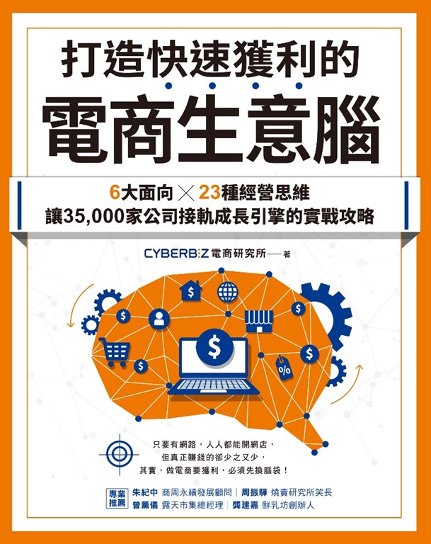 內容簡介 只要有網路,人人都能開網店, 但真正賺錢的卻少之又少,其實,做電商要獲利,必須先換腦袋!★ 實戰技能╳策略思維,教你從新手快速變高手的電商經營大全★ 繼《電商經營100問》熱銷好評,台灣三大電商系統商CYBERBIZ顧問團隊全新力作身為電商人的你,是否正在經歷這些難題:.市場競爭越來越激烈,大家都在打折扣戰.運用了各種行銷工具,卻看不出成效.營業額成長趨緩,找不到操盤的人才……許多人以為只要會用網路、把商品上架到平台,就可以開始賺錢,然而,電商市場千變萬化,當廣告成本上升、流量紅利消退,許多商家發現營收停滯不前,甚至面臨虧損就一蹶不振。►來自第一線電商顧問團隊的觀察和心法CYBERBIZ身為台灣前三大電商系統商,擅長指導本土店家如何用小成本做大生意,成功協助超過35,000間不同產業商家開啟網路事業及轉型,讓眾多中小型品牌業績成長,甚至擴展海外市場,例如:.「鮮乳坊」運用線上訂閱制,隔年業績翻倍.汽車零件商「曼巴科技」用跨境電商服務,3個月內營收突破百萬►做電商要成功,關鍵從換上生意腦開始CYBERBIZ注意到,現在商家要開網路商店很簡單,但是普遍沒有具備「做生意」的思維,因此開店後,依然會面臨到價格比不過競品、訂單不如預期的問題。電商經營不僅代表品牌與消費者的互動,更是一門關於經營生意的學問,因此從產品定位、成本控管、社群行銷到培養鐵粉,都需要思考策略,提前布局。►23種經營思維,破解6大難題、活用4大電商力,從此訂單源源不絕CYBERBIZ透過他們輔導店家的實務經驗和智慧,破解經營電商最常遇到的6大難題,例如:.開網店,要準備多少錢?多快才能回本?.在電商經營上,如何管理時間,制定計畫和目標?.買了系統後,訂單為什麼不如預期?.除了打折扣戰,還能怎麼吸引目光?他們還提供打造電商生意腦須具備的23種思維,歸納出CYBERBIZ的獲利關鍵「4大電商力」──.讓流量高效變現的「行銷力」:善用5大行銷工具、投放廣告、Google分析…….打造口耳相傳的「社群力」:用FB、IG、YT、LINE……讓公域流量轉換成私域流量.會員不斷上門的「回購力」:如何吸引、留住、養大會員?整合線上線下的消費體驗.商機越做越多的「市場力」:用「波特五力」掌握市場趨勢,把利基商品成功推向海外本書集結了眾多電商成功者的實戰經驗和策略思維,無論你是電商新手,還是想突破成長瓶頸的電商人或商家,都能幫你解決問題、快速換上生意腦,輕鬆累積鐵粉、提升廣告投放效益、打造熱銷商品,實現電商獲利之路!