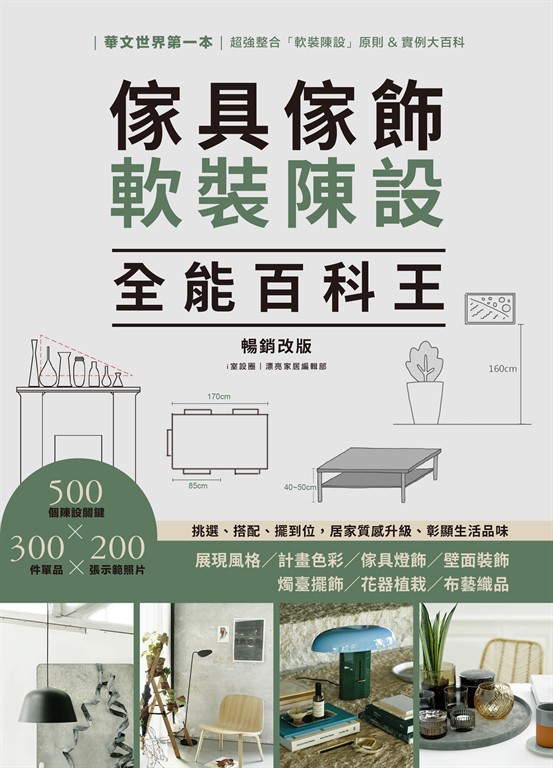 商品描述 | 傢具傢飾軟裝陳設全能百科王【暢銷改版】:挑選、搭配、擺到位,居家質感升級、彰顯生活品味 (電子書):華文世界首創,最強整合「軟裝設計」的全能指南!從傢具擺設到配色 |