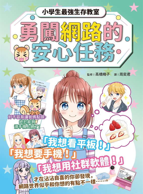 內容簡介 ──「我想要手機!」、「我想看平板!」、「我想用社群軟體!」──好不容易讓爸媽點頭,終於能夠滑手機上網了!才在沾沾自喜的你卻發現,網路世界似乎和你想的有點不一樣…… 在社群上被陌生人搭訕,還收到怪怪的簡訊 一堆廣告和假訊息,其中有一些讓人看了不舒服的影片和圖片 以為是免費送遊戲點數,卻不小心拿爸媽的卡刷了好多錢 有大人說要送我貼圖加好友,還要約我見面 被同學在群組裡起鬨嘲笑,甚至偷拍我的照片上傳……★一本專屬於網路新手村的小小勇士,快速練等打怪的生存攻略指南這是一本心情筆記 + 漫畫故事 + 任務遊戲書,陪你避開網路上那些看起來很誘人,其實充滿危機的陷阱怪獸,完成「勇闖網路王國的安心任務」!並以培養「上網判斷力」與「3C自控力」,學會「說『不』與求助」為核心概念,搭配各種有趣的情境練習,一步步帶你升級專屬於自己的「網路安全裝備」。──五大關卡+實戰任務,讓爸媽從說「不可以!」到「一起學」,將你打造為網路世界最強角色!✓我不公開個資,不被騙走帳號✓我會過濾真偽資訊,不被假訊息騙得團團轉✓我懂得保護自己,能識破偽裝大人的假面人✓我尊重別人,不會對他人連續轟炸訊息✓我不是超時上網魔王,因為我知道找到網路和生活的平衡才快樂【本書特色】✦「提升網路防禦力」──強者才能生存!不亂點連結、不亂加陌生人、不隨便傳自拍照、不公開個資、懂得適時向大人求助,透過「四不一懂」建立你的全知網民視角。✦「解鎖網路迷宮Q&A」──帳號被盜怎麼辦?為什麼網路上那麼多免費影片?為什麼我明明沒有說自己住哪裡,還是被別人肉搜到了?朋友限定的影片也會外流嗎?如果有人在社群上罵我怎麼辦?我可以拍影片上傳嗎?網路上可以賺錢嗎?你會在這座巨大網路迷宮裡遇到的各種疑難雜症,本書帶你一一破解。✦「培養網路公民素養」──留言不傷人,轉寄停看聽,從「社群對話情境練習」、「網路上的禁忌行為」到「手機溝通實戰技巧」,學習當個具備良好素養的網路公民。✦從「禁止」到「共學」,建立與爸媽的數位和平公約──「我也不想一直滑手機,也不是不寫功課,只是有時候玩得太開心就忘了時間」「我不是故意亂看亂點,只是因為好奇想多知道一點」「我不是不說,只是怕被罵才不敢說」「我不是沉迷網路,只是想和那些網紅一樣創作屬於自己的東西……」讓大人的經驗值,成為你的安全網!你可能比爸媽更懂網路,但爸媽在人生經驗和直覺判斷上有時比你更豐富,這本書會讓你們增加對彼此的信任,共同定下雙方都能接受的「使用規範」,並肩踏上數位共學之旅。★★★★★讀者五顆星好評推薦★★★★★✦資訊量豐富,對家長來說是一本內容充實的好書。加上可愛的插圖,讓我們家女兒讀得很專心。我和先生也打算參考這本書,來訂定家中使用手機等3C產品的規則。──女兒很愛這本書的小學生媽媽✦書中文字量不少,對孩子來說可能不容易一次讀完。但作者將重要的內容都以大標題強調,搭配漫畫情境對話,讓孩子能像翻閱插畫書一樣輕鬆地讀下去。──圖書館的故事媽媽✦這本書的可愛畫風中和了網路社會潛藏的各種黑暗犯罪,在大人眼中,這種反差感足以讓人警覺又不致顯得過於沉重。我認為是一本非常出色的網路安全入門書。──上班族家長