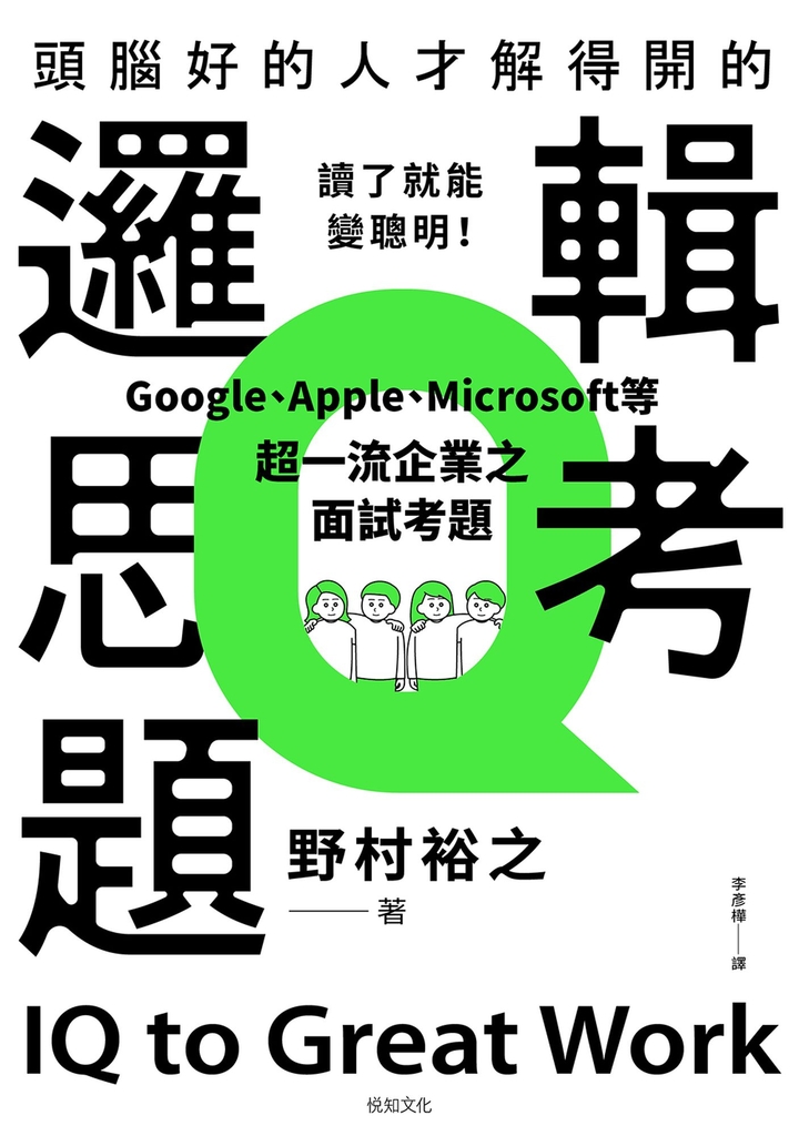 內容簡介 職場上,光靠學歷和經驗已遠遠不夠,透過Google、Apple、Microsoft等超一流企業之面試考題,培養出真正重要的「問題解決能力」!★上市一年內,火爆突破19萬冊!★2024年度商業書銷售TOP 4!★收錄了哈佛與耶魯學生也僅有17%正確率之問題!★矽谷創投家彼得・提爾將邏輯思考題視為最佳智力訓練!★讀者紛紛表示:「太有趣了,讓人停不下來!」「在朋友間引發熱烈討論。」★不需要複雜的知識或數學計算,只考驗邏輯理解。【為什麼世界級「菁英」,都喜歡鑽研邏輯思考問題呢?】這個時代所需要的,是在面對前所未見的複雜問題時,不被直覺或常識牽著走,能夠冷靜地分析情勢,並依據邏輯作出正確判斷的「思考力」。具備這種能力的人,才可稱作現代的「聰明人」。原本大學畢業後靠著打工度日的野村裕之,被挖角到上市公司工作,甚至在3年內創下了1億日圓的業績,而為他的人生帶來巨大轉變的,正是透過「邏輯問題」培養出來的精準思考。【快速改變現況、開創新局,讓你脫穎而出的5大思考能力】 邏輯思考→☑找到成功捷徑 批判思考→☑推動業績改善 水平思考→☑激發巧思 俯瞰思考→☑擬定對策 多元思考→☑品牌活化本書共收錄67道題,從經典題型到社群媒體上的熱門時事,並且按照難易度分級,由淺入深,光是解題的過程,就能建立起個人的思維迴路,像「頭腦好的人」一樣看穿事物的本質。【小試身手時間!測試看看你的邏輯程度 ʕ•͡ᴥ•ʔ】✎Q1:4名員工上班4天,可生產4個商品。請問100天生產100個相同的商品,至少需要幾名員工?(提示:答案並不是「100人」。)✎Q2:有一場活動,開始時觀眾只有1人……但每過1分鐘就增加為2倍,12分鐘後會場便座無虛席。那麼,觀眾剛好佔據會場一半時,是在開始後幾分鐘?(提示:答案並不是「6分鐘後」。)
