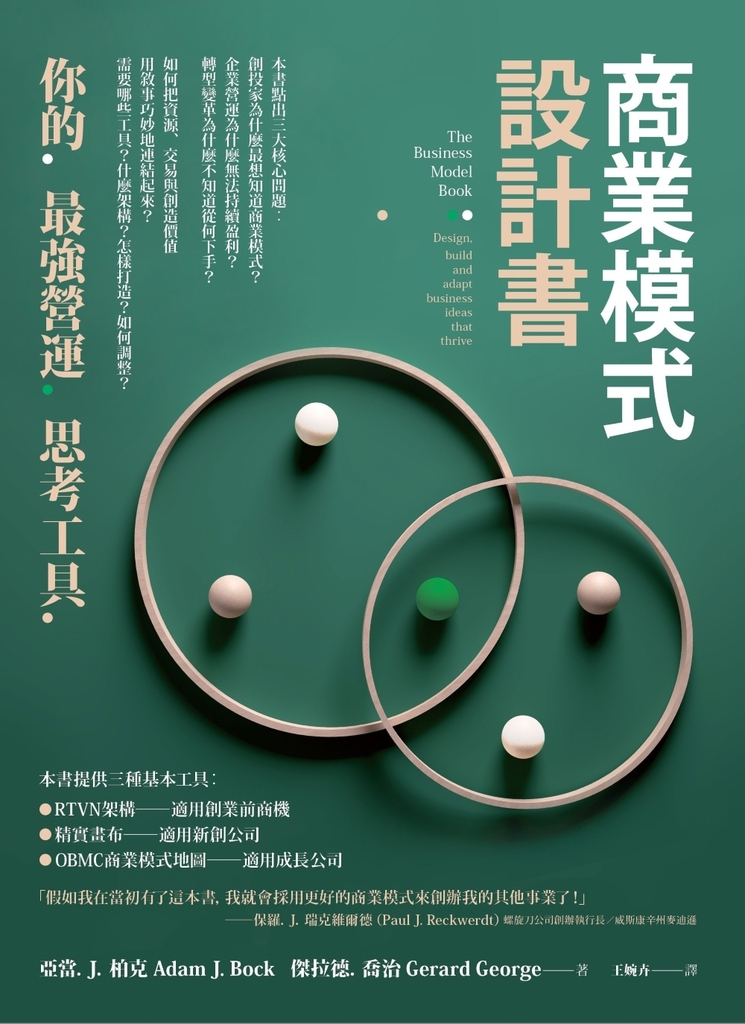 內容簡介 創投家為什麼最想知道商業模式?企業營運為什麼無法持續盈利?轉型變革為什麼不知道從何下手?「商業模式」是營運思考必備工具只要有組織,就會有商業模式。優異的商業模式會促使組織快速成長;糟糕的商業模式則會讓最具前途的創投公司注定失敗。任何經營公司的人,不論事業是否成功,都知道顧客、供應商、員工、資源、資金與夢想之間的關聯性。本書提供了一個架構,讓你能以視覺化方式設計並評估你的夢想,也會讓你看到你需要填補的空白處有多大。為你的組織量身設計「商業模式」商業模式是以地圖或故事呈現的設計,這些要素集中圍繞在資源、交易、價值創造,當這些要素達成協調、彼此相互配合,便能產生前後一致且說服力十足的敘事,而商業模式就有可能持續進行:(1)資源:是商業模式的原料。記得檢視在你的組織中,有哪些關鍵資源?不論是資產、知識或能力,都必須詳細列出可以取得和必要的資源。(2)交易:是連結的樞紐,指的是連結、結合、交換各項資源。其中,「跨界交易」最為重要,例如向客戶銷售商品、跟供應商買原料,都屬於跨界交易。如果想要評估商業模式,可以從這開始下手。(3)價值:商業模式只有在能「創造」並獲取「價值」時才算成功,因此組織必須要將資源和交易中所蘊含的價值變現並獲取,才能夠獲益、存續及興盛。(4)敘事:優異的商業模式會訴說前後一致、說服力十足,也能實行的故事。當敘事將資源、交易、價值連結在一起時,商業模式本身便能達成協調一致。對一致性的概念有所了解後,就能打造出商業模式地圖和商業模式圖。該如何把資源、交易與創造價值用敘事巧妙地連結起來?需要哪些工具?什麼架構?怎樣打造?如何調整?你的商業模式資源夠SHaRP嗎?1.專業化(Specialised):同樣都是MP3隨身聽,蘋果的iPod為何可以擁有75%的市占率?2.難以複製(Hard to copy):可口可樂的優勢在於,具有他人難以複製的商業機密。3.罕見(Rare):稀少的資源指的可以是資產、不尋常的知識和獨特的能力。4.寶貴(Precious):有價值的資源是實際可行產品與服務的基石。在不同的時機,你可以採取不同的三種基本工具:1.創業前:你可以利用「RTVN架構」洞察商機。2.對於剛起步的事業:「精實畫布」協助你探索最成功的商業模式。3.成長公司:「OBMC商業模式地圖」有效發揮企業中的資源與能力。商業模式是判斷組織是否可長期維持下去的唯一最佳指標。不論你是經驗豐富的高階主管、中階的經理人、小型企業的業主、創業家,或只是對商業和管理有興趣的一般人,只要從頭到尾完成商業模式的週期和分析,就能掌握讓事業維持不墜的關鍵所在。