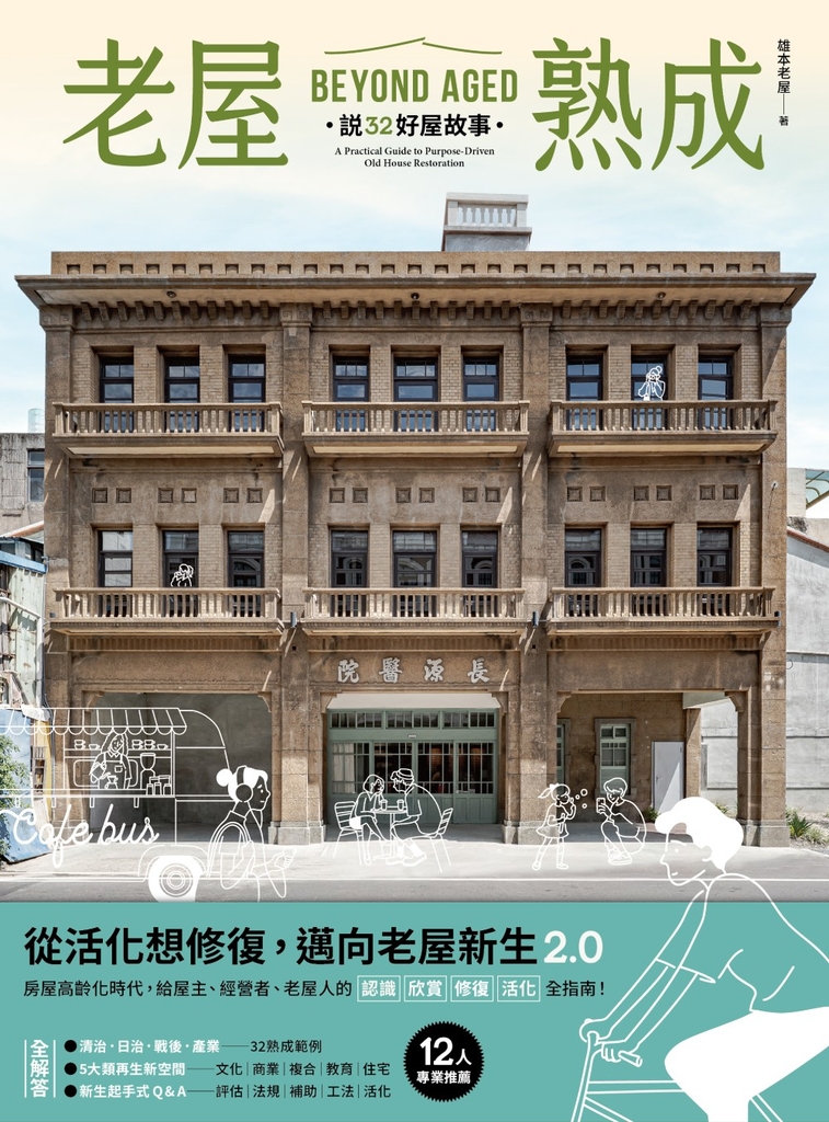 作者介紹 作者雄本老屋我們深信,老屋不只是需要悉心守護的歷史資產。它的新生,始於為地方注入商業活水,從而建立起能夠自主營運的健康體質。當穩健的商業模式開始運轉,一個永續的「地方價值循環」便得以成形,讓老屋成為驅動地方共好的關鍵觸媒。懷抱這樣的信念,雄本老屋於 2021 年成立。我們致力於打造永續的「老屋再生產業鏈」,以歷史老屋為核心,串聯文史調查研究、建築修復、商業營運,直至地方發展的永續經營,為老屋找到與當代對話的新方式。曾企劃並主筆多本老屋成果與彙編著作‧臺北市都市更新處的《熟成台北:二十種老屋生活配方》,論述並整理臺北二十年來的老屋保存政策脈絡與案例觀察。‧文化部文化資產局的《維古創生:112 年度古蹟歷史建築紀念建築管理維護評鑑》與《維古創生:110 年度古蹟歷史建築紀念建築管理維護評鑑優良個案輯》,從管理維護的角度、機關評選的立場,帶領大眾看見文化資產的永續經營典範。‧臺北市都市更新處的《映劃台北:二十個公辦都市更新的時光紀行》,從城市規劃與都市更新的切角,介紹臺北二十個公辦都更的發展願景。