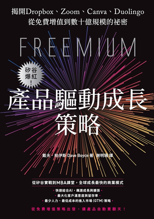 內容簡介 想讓你的產品夯遍全球,就必須掌握「產品驅動成長」(Product-Led Growth,PLG)策略!從免費增值策略出發,讓產品自動賣翻天! ◎Next Big Idea Club葛拉威爾等推薦必讀◎尼爾.霍恩(Neil Hoyne)/Google首席策略師、羅伯.吉格里奧(Rob Giglio)/Canva首席客戶長 好評推薦從矽谷實戰到MBA課堂,全球成長最快的商業模式》快速結合AI,飆速成長與擴張》讓客戶滿意度與留存率最大化》滿意的客戶會主動推薦與分享,打造強大的成長循環》不需要龐大的銷售與業務團隊,最低成本、最少人力》讓Dropbox、Zoom、Slack和DocuSign等公司成長為市值數十億美元的企業本書是「產品驅動成長」的權威指南,作者是矽谷企業家暨哈佛MBA,並開設全球首門專門探討該主題的MBA 課程,告訴讀者如何透過「免費增值」(Freemium)取代傳統的行銷漏斗,在一開始透過免費但好用的產品網羅最多用戶,進而把這些用戶變現為帶來經常性收入的大戶!無論是新創企業、大型公司,數位產品或實體產品,都將從本書學到:》如何開發一款能夠自己賣到翻的產品?》如何在公司內部打造專門的成長團隊?》如何把免費用戶,變成願意掏錢的超級大戶?》如何讓用戶不斷續訂、為你推薦,打造無限的成長循環?》非軟體產業該如何善用產品驅動成長策略?本書是打造矽谷獨角獸的實用手冊,更是讓你的公司飆速成長的經典密碼!推薦序Next Big Idea Club葛拉威爾等推薦必讀尼爾.霍恩(Neil Hoyne)/Google首席策略師羅伯.吉格里奧(Rob Giglio)/Canva首席客戶長Agnes/Techcubator 產品經理林啟維/Portaly創辦人矽谷阿雅/矽谷AI新創Taelor執行長劉奕酉/鉑澈行銷顧問策略長蔡伊芳/商業思維學院產品長、資深產品人 ──權威推薦 ==國際讚譽==「很少有書能這樣清晰地捕捉到矽谷的策略。如果你想打造一個能夠自我銷售的產品,柏伊斯清楚地列出了這整個過程。」──尼爾.霍恩(Neil Hoyne),Google首席策略師「我曾任職HubSpot、Adobe、DocuSign和Canva等領先的產品導向成長公司,因此可以自信地推薦本書,它是我過去十年學習的捷徑。」──羅伯.吉格里奧(Rob Giglio),Canva首席客戶長「只有少數高階主管真正理解產品導向成長的原則、如何結合市場進入策略,以及如何追求平衡的方法。本書提供了解答,並以尊重且易於理解的方式連結其理論與實踐。」──赫蘇斯.雷奎納(Jesus Requena),Figma成長執行長