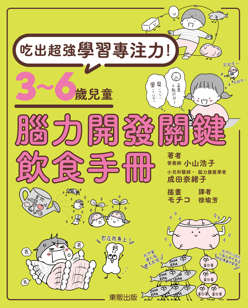 作者介紹 小山浩子 料理研究家、營養師。曾任職於大型食品製造商,於2003年獨立創業。在日本全國進行演講活動、開發食譜、撰寫食品營養專欄,上過NHK等電視台的健康節目,活動領域廣泛。目前為止指導過的學生已達70,000人以上。著有多部腦力培育相關書籍,如《子どもの脳は「朝ごはん」で決まる!》(小学館)、《「健康おやつ」で子どもに免疫力を育む!》(小学館)、《親子食養:專業營養師教你大腦開發這樣吃》(世茂)。同時也是腦力培育食品的專家。 官方網站 www.koyama165.com 成田奈緒子 神戶大學醫學部畢業。小兒科醫師、腦部發展學家、文教大學教育學部教授。擔任醫學、心理、教育、社福方面親子支援機構「育兒科學軸心」的代表。除了以「打造讓孩子能一輩子幸福生活的頭腦」為主題,針對家長、老師、保母等對象進行演講之外,同時也致力推行「早睡早起吃早餐全國協議會」的社會活動。著書與監修書籍有《子どもにいいこと大全》(主婦の友社)、《子どもの脳を発達させる ペアレンティング・トレーニング》(合同出版)等多部著作。 子育て科学アクシス www.kk-axis.org 繪者簡介 モチコ(Mochiko) 過著每天被女兒(2014.3生)和兒