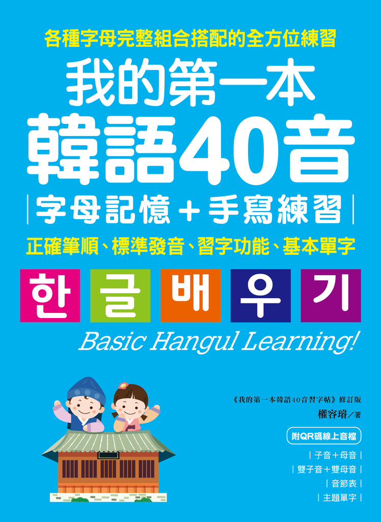 內容簡介 40音不會背,多抄幾次全都會!本書為結合習字帖功能的輕鬆、簡易韓語發音教材藉由反覆的書寫練習,邊寫邊讀達到手腦並用的學習記憶效果加上標準韓語的發音音檔讓你看到韓文就能唸,聽到韓語就能寫適合韓語發音自學,更方便韓語老師教學使用提供完整的字母組合練習搭配標準的韓語發音音檔讓你在聽、寫的循序漸進中,自然記住每個發音。★搞懂基本字母與40音的關係,想學好韓語發音就要從源頭學起我們常聽人說韓語有40音,但你知道韓語40音是怎麼來的嗎?其實韓文的基本字母只有24個,分別是14個子音與10個母音。那為什麼大家都說韓文40音呢?這就要提到有點專業的音韻學了。其實我們平常聽到的40音,指的是「音韻」,也就是用來注音的文字。簡單來說,就是韓文的24個基本字母可以組成40個基本發音,這些發音就像我們使用的注音符號ㄅㄆㄇ一樣,各有各的音。而這40個音,分別是由19個子音跟21個母音所組成。大家是不是覺得奇怪,剛剛前面不是說韓文的子音有14個,母音有10個嗎?怎麼講一講變成19個子音跟21個母音呢?因為前面說的14個子音跟10個母音,指的是「基本字母」。40音之所以會有19個子音跟21個母音,是因為這些基本字母還可以相互搭配,變成另一個基本音。例如兩個單子音的ㄱ能組成一個雙子音的ㄲ,單母音的ㅏ跟單母音的ㅣ,則能結合成雙母音的ㅐ。所以14個單子音的基本字母,加上五個雙子音總共是19個子音;而10個單母音的基本字母,加上11個雙母音就是21個母音。19個子音加上21個母音,就是我們常說的「韓語40音」。之所以會跟大家講這些,就是不希望大家在學習40音的時候花費好大的力氣死記硬背。基本上只要記得24個基本字母,剩下的16個音只需用聯想的方式記憶便行。作者運用音韻學的概念編排本書,從基本字母教起,為的就是希望讓讀者藉由循序漸進的方法,透過書寫與聆聽的方式自然記住這些發音。這樣的編排方式不僅有別於市面上其他韓語發音書,而且本書還有習字功能,讓讀者有得學、有得聽又有得寫。期許這樣的學習方式,能讓讀者用最輕鬆的方式學好韓語40音。★循序漸進的學習方式帶領讀者用最自然的、最輕鬆的方法達到深刻記憶的效果本書由韓國弘益教育出版,是專為外國人設計的韓語字母入門教材,編排上有別於一般市面上韓語發音書籍的教學順序,先從子音教起,等教完讀者子音之後,接著才教基本母音,以下簡述各章節的教學重點:第一章:子音第二章:母音,前兩張學習完後,就學完了韓語的24個基本字母。第三章:扣除24個基本字母之後,剩下的16個音。包括5個雙子音與11個雙母音,讀者要學到第三章,才算真正把韓語40音學完。第四章:以「子音+母音」為主,做充分的組合訓練。第五章:以「子音+雙母音」以及「子音+母音+終聲」為主,做充分的組合訓練。第六章:針對韓國日常生活不可或缺的基礎單字做強化訓練。本書有很充足的子母音組合訓練及手寫練習,期許藉由反覆練習過程讓讀者自然習得韓文字母,達到深刻記憶的效果。本書特色◆以韓文子音與母音為基礎組成基本學習內容作者運用音韻學的概念編排本書從24個基本字母教起,希望讓讀者藉由循序漸進的方法從源頭學起。讀者一開始會接觸單子音,接著會學到單母音,等單子音與單母音都學完之後,就會學習雙子音與雙母音,最後再學習單字。由淺入深,期許這樣的學習方式,能讓讀者用最輕鬆的方式學好韓語40音。◆豐富的習字設計,從正確的筆順到韓語各種字母組合,讓讀者能夠充分的練習每一課並不是僅僅教你基本字母,配上少得可憐的練習就結束了。本書除了教你韓語發音外,還兼具習字的功能,不但可以讓讀者學到韓語字母的正確筆順與相對應的正確發音,還能藉由動手練習的過程讓認識韓語字母的能力越來越強,並熟稔各種子音、母音的搭配組合。◆除了韓文字母,還能學到韓國日常生活中經常使用的單字除了學習韓文字母的單元外,書中還有主題單字的練習部分,依照類別區分分別是水果、動物、蔬菜、職業、飲食、位置、交通工具、場所、季節天氣、家中物品、家庭稱謂、學習用品、花、國家名稱、樂器、服裝、顏色、興趣、運動、動作用語、量詞、修飾用語、表達心情、敬語、同音字、擬聲詞等30個主題,藉由學習這些主題的單字,還能回頭再一次強化辨識韓語字母的能力,最終達到「看到韓文字就能唸,唸得出來就能拼寫得出韓文」的境界。◆QR碼線上音檔隨掃隨聽本書已將所有的音檔放在網路上,並在每一課的一開始放上了相對應的QR碼,只要您用智慧型手機等行動裝置掃描一下QR碼,就能夠馬上聽到該課的MP3,到哪裡都能夠「行動學習」。亦可掃描全書下載QR碼,下載全書的MP3音檔,不需額外安裝自己不熟悉的播放APP才能聽,也省去每次聽音檔都要掃描的麻煩!(註:打包下載檔案為ZIP壓縮檔,請先安裝解壓縮程式或APP再行下載,由於iOS系統對檔案下載的限制,iPhone用戶在掃描出現「不支援的檔案類型」後點擊右上角的三點,之後選擇「開啟方式」,請等待手機轉圈完畢後,選擇「儲存到檔案」。即可在「檔案APP」內執行解壓縮。)