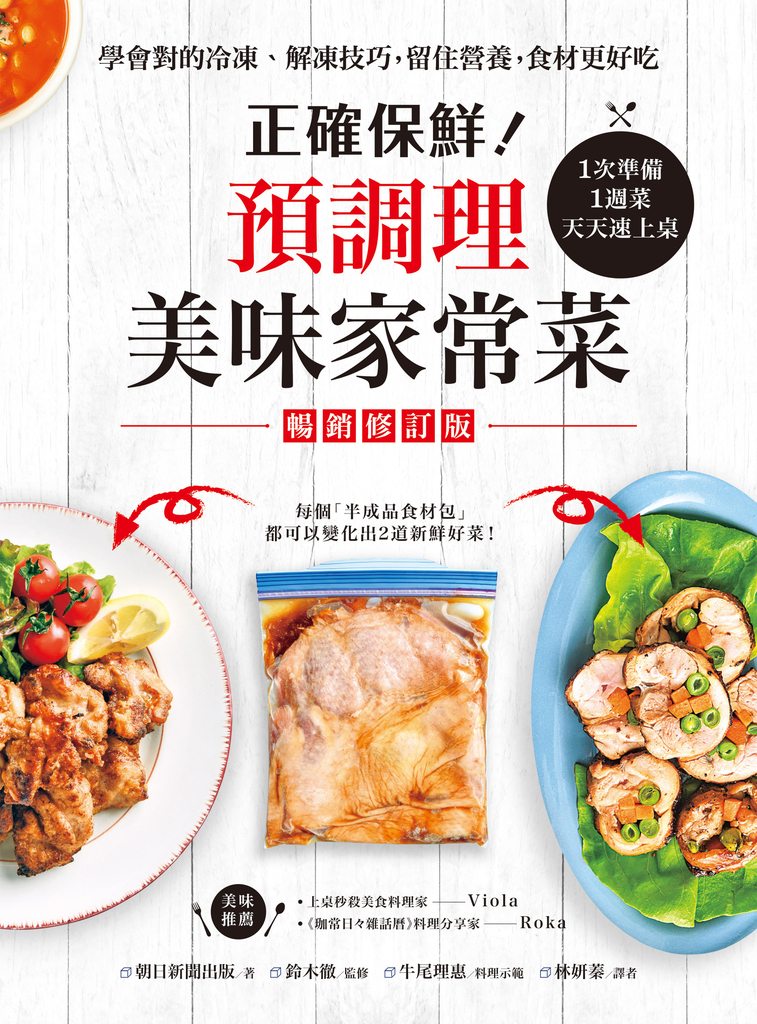 內容簡介 ★超過300種常用食材的冷凍&解凍技巧!★上桌秒殺美食料理家Viola、《珈常日々雜話曆》Roka美味推薦!用正確的冷凍方式「預先調理」食材, 不僅營養不流失,也更美味、保鮮期更長,趁假日空檔做好「半成品食材包」,平日下班不用衝,迅速開飯真輕鬆!每天都在煩惱下班要做什麼菜,但平常又沒空買食材,真麻煩!買回來的食材就往冰箱裡塞,經常放到壞掉?或因為錯誤的解凍方式,讓料理大大減分?別擔心!本書教你用正確的冷凍保鮮技巧,將買來的食材做成各種風味的「半成品食材包」,不僅大幅延長食材的保存期、留住所有營養,而且每天都能變換新菜色!∥「預調理」可延長食材保鮮期、減少備料時間只需利用週末空檔一次買好食材,進行簡單的調味處理,再放入冰箱冷凍,不僅能存放2~3週,而且完全不浪費食材;想吃時,依食用方式將調味好的肉類、海鮮或汆燙好的蔬菜取出解凍,再簡單烹調即可馬上上桌,再也不用每一餐都從頭做起!∥4大類食材╳變化食譜,美味、鮮度、營養,一次滿足本書除了分享「肉類、海鮮、豆類‧蛋‧乳製品、蔬果類」的正確冷凍、解凍技巧,還介紹從中式的高麗菜肉絲炒麵、日式味噌雞肉餅,到義式香煎旗魚排等多樣料理的食譜,任你選、任你做,怎麼吃都吃不膩!本書特色★超實用「預調理冷凍食材包」,大大節省料理時間,美味快速上桌!食材買回家後,只要將肉類、海鮮或蔬菜等食材,依不同類別和部位進行醃漬、汆燙等前處理步驟,再放入密封袋或保鮮盒做成「半成品食材包」,然後就能放入冰箱保存了。這樣一來每天下廚時,就不必再花時間處理,只需將食材解凍,加上一點配料做變化,馬上就能端上桌,大大節省料理時間!而且食材的口感、色澤和營養全都能保留,做菜變得超輕鬆,下班再也不用衝回家做飯!★4大類食材多樣變化,從家常菜到異國料理,應有盡有!本書中的每個「半成品食材包」都能變化出2道菜色,從中式家常菜到日式、義式等異國料理,餐餐都有不同變化,每天不用再傷腦筋要做什麼菜,輕鬆滿足全家人的口味。‧生薑醬油漬雞腿肉 → 鮮蔬雞腿捲╱酥嫩炸雞塊‧奶油醃牛排肉 → 香煎牛排╱和風山葵牛排丼‧蒜漬旗魚 → 義大利香醋煎旗魚排╱旗魚沙拉‧味噌漬蛋黃 → 蛋黃拌飯╱日式味噌雞肉餅‧蔬菜番茄泥 →茄汁高麗菜捲╱香濃茄汁義大利麵★ 3大冷凍技巧 X 4大解凍祕訣,從基礎到進階,傳授正確的冷凍、解凍保鮮術!食物在冷凍前後究竟有什麼差異?為什麼蔬菜在冷凍前要先經過汆燙、蒸煮或油炸的處理?直接將買來的食物放在冰箱裡可以嗎?一般家庭主婦常因把買來食材直接丟進冰箱,導致食材變質、新鮮度流失,最後只能丟棄,造成無謂的浪費。本書從冷凍、解凍的基礎知識開始教,並傳授真空包裝、無縫冷凍及冰漬冷凍等3種冷凍法,以及冰水、冷藏、流水、直接烹調等4種解凍術,教你如何用對的方式留住食材的口感、色澤與營養價值,既能做出美味可口的料理,又不浪費食材、不留剩菜!★步驟圖解+易懂文字,即使是廚房新手也能輕鬆學會!不論是冷凍、解凍知識的原理說明,還是各種食材的冷凍、解凍、烹調方式,本書均有大量清楚的步驟圖,輔以簡單的解說,就算是「零經驗」的新手也不用擔心看不懂、學不會,而對於每天都要下廚的忙碌煮婦來說,也能讓料理更上一層樓,輕鬆抓住全家人的胃!名人推薦「本書教大家以正確的冷凍、解凍法保持食材鮮度,且冷凍的同時順便醃製,解凍完直接料理,不需再等待醃製過程,讓你與家人有更多的時間共享餐桌美味!」——上桌秒殺美食料理家Viola「這是一本非常實用的食譜書!本書除了傳授正確的食材保鮮知識和技巧,還教你如何「預先調理」食材,做成「半成品食材包」,每天想吃食,只要將其解凍,輕鬆烹調後即可上桌,而且營養和美味都不流失」——《珈常日々雜話曆》Roka