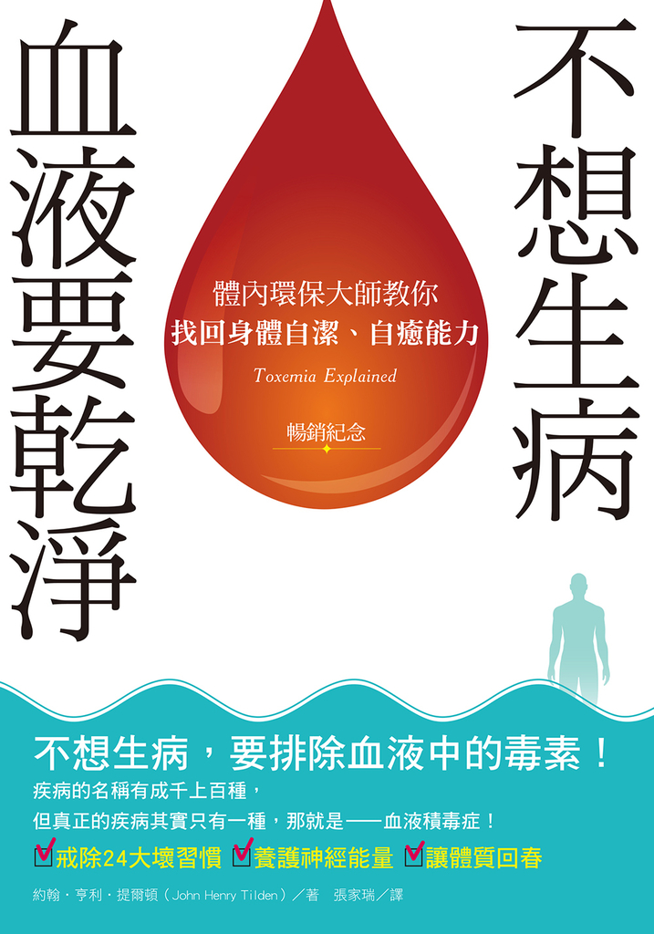 作者介紹 約翰‧亨利‧提爾頓(John Henry Tilden,1851.01.21~1940.09.01) 美國另類療法、替代醫療先驅,因其對藥劑學的批評,以及他以「血液積毒症」解釋疾病的理論而聞名。因為懷疑藥物的療效及其所對人體的傷害,提爾頓轉而支持預防性醫療保健,並出版月刊分享他的理論。1926年,提爾頓出版《不想生病,血液要乾淨》,以解釋疾病的「真正原因」,他的理念影響許多另類療法的專家對排毒的看法,例如著有《食物是最好的醫藥》知名食療法醫師亨利‧G‧畢勒(Henry G. Bieler)、整體健康之父柏納德‧詹森(Bernard Jensen)、《全臺第一本神奇的黏土療法入門指南》作者瑞恩‧尼辛斯基(Ran Knishinsky)、《長壽的祕密或如何活三個世紀》作者戈達德‧E‧戴蒙德(Goddard E. Diamond)……等等。