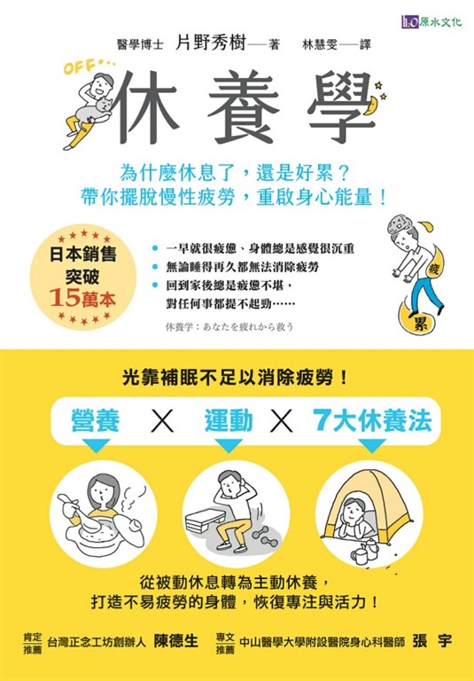 產品目錄 目次推薦序 學習主動休養,為身心注入源源不絕的活力序 言 打造健康身體的三大關鍵第1章 有八成日本人都處於疲累狀態正處於疲累狀態的人在二十五年內增加了兩成疲勞所造成的經濟損失超過一.二兆日圓年輕女性是最疲累的族群越年輕的人在白天越有睡意現今仍推崇「不眠不休是美德」「我累了要休息。」這句話沒有人說得出口日本人其實意外地有好好休息日本與其他國家的最大差異為「休息方式」「日本是休養的落後國家」──這是真的嗎?大家仍不清楚休養的重要性我們對疲勞的感知方式與從前大不相同光是讓身體休息並不足以消除疲勞請大家了解體能疲勞模型理論過度訓練症候群的可怕之處上班族身邊並沒有教練幫忙提醒「疲勞程度確認表」第2章 從科學角度了解疲勞的真相你真的知道疲勞究竟是什麼嗎?疲勞是一種跟疾病有關的徵兆忽視疲勞會導致慢性疲勞維持身體修復能量的方法疲勞感是身體發出的警訊疲勞感是可以被遮蔽的為什麼營養補充飲品與咖啡可以讓我們充滿活力呢?持續遮蔽疲勞感後,等著我們的是「過勞」疲勞的「根源」是壓力我們生活在重重的壓力源之中這五種壓力源會讓我們產生疲累感承受壓力會使免疫系統無法運作長期忽視疲勞會引起內分泌系統的疾病壓力也可能使血糖飆高自律神經失調是最早出現的疲勞警訊了解自律神經就是消除疲勞的捷徑自律神經的整體活性會在十五到二十歲間到達顛峰交感神經與副交感神經的平衡非常重要疲累可分為四種類型免疫系統失調很容易罹患疾病column 疲勞的原因並非乳酸堆積第3章 達到最佳「休養」的七個戰略擺脫「活動→疲累→休養」的迴圈在日常的迴圈中加入「活力」能鍛鍊身心的「超量恢復理論」是什麼?試著刻意給自己一點負擔吧!有技巧地給自己負擔,就可以提升活力從保守休養轉換成主動休養吧!休養學上定義的「七種休養類型」第一種生理性休養「休息型」第二種生理性休養「運動型」利用泡澡的水壓達到休養目的能消除疲勞的泡澡溫度無論是38度或42度都好第三種生理性休養「營養型」「吃八分飽」真的能延年益壽甜點無法消除疲勞飲酒反而會成為「疲勞的根源」第一種心理性休養「親近型」接觸大自然也能消除疲勞第二種心理性休養「娛樂型」第三種心理性休養「創造想像型」社會性休養「轉換型」最重要的是自行搭配組合七種休養類型發揮創意搭配組合休養類型吧!光是換個睡眠環境也是不錯的方法千萬別想貪心兼顧每一件事|我的主動休養記錄||我的壓力因應對策清單|column 只要穿上身就能消除疲勞的「疲勞舒緩衣」第4章 光是睡眠無法真正獲得休養睡眠是活力的關鍵睡眠具有萬能的力量關於睡眠仍有許多未解之謎在電車上睡著時會倒向鄰座的原因一旦非快速動眼睡眠減少,就容易罹患失智症?隨著年齡增長,「越來越睡眠不足」也是無可奈何有效短眠15分鐘左右最理想「灰姑娘時間」是騙人的?「不要睡太久」才是聰明的休養之道調整自律神經也能帶來活力有三種方法可以調整睡眠晚間盡量不要照射到強光第5章 現在就開始採取全新的「休息方式」吧!就算工作還沒告一段落,也要先保留休假感覺要開始疲憊前,就先好好休息改在「星期六」打開行事曆就好空檔時間最適合用來休息將疲勞感記錄下來請大家秉持「休假本來就要彼此互助配合」的精神「工作間隔時間」正逐漸延長中日本的職場環境也開始有所轉變請大家改變想法:「休息時就要好好休息」因疲累而休息並不是裝病column 疲勞是未病的階段