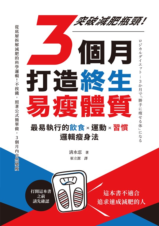 | 商品名 / | 3個月打造終生易瘦體質:突破減肥瓶頸!最易執行的飲食×運動×習慣邏輯瘦身法 (電子書) |