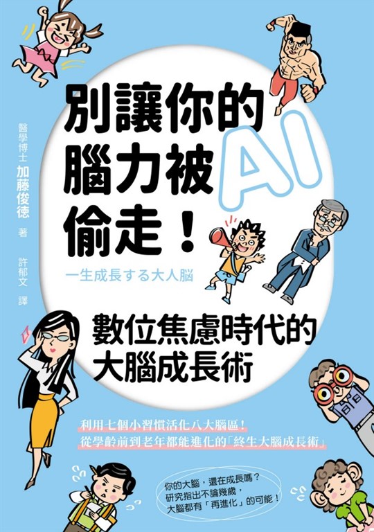 產品目錄 序章 把記憶力和思考力都交給AI,現代人的腦部正在退化比老化更可怕的是「腦的退化」持續成長的大腦由八個大腦區塊編號組成的大腦大腦成長的法則大腦也有適應的極限「不動」對大腦的威脅AI 時代,大腦的「落差」正在擴大第1章 AI 時代正在削弱我們的大腦AI時代帶來的便利與大腦AI時代下逐漸弱化的「運動系腦區」不動就連想像力也會衰退?因新冠疫情而失去的「光」網路世界能取代現實世界嗎?「遊戲腦」到底有什麼問題?一直被騙的「遊戲腦」戒不掉遊戲的原因「遊戲腦」可能導致記憶力下降?如何防止腦力落差擴大?第2章 AI時代中逐漸失落的自我情感當人際共同體消失,情緒腦區也開始退化情緒類大腦區塊的慢速成長情緒類大腦區塊的左右差異為何左腦情緒容易被忽略?AI時代下難以培養的自我情感「讚」背後的認知需求宗教與大腦,認同感的真相從浩瀚資訊中篩選真相的能力作為自我防衛的資訊隔離鍛鍊運動系與情緒系大腦區塊的重要性第3章 模式化的大腦仍能持續成長──依世代特徵隱藏在大腦落差背後的行動落差【學齡前期】透過真實體驗培養「類比大腦」腦儲蓄—養成能「動起來」的身體在人際關係中培養互動力【青春期】做自己喜歡的事,讓大腦加速成長【青少年期】大腦重整知識與記憶的黃金期五年一循環,鍛鍊自我變革力不斷嘗試與失敗,鍛鍊二十多歲的成人腦【壯年期~中年期】專業化的成人大腦避免陷入成人大腦的固定模式該從中年期開始鍛鍊的「超腦區」【前期高齡者】大腦快速退化,你準備好了嗎?【後期高齡者】發揮擅長大腦區塊,維持大腦活力專欄 新冠疫情的影響新冠疫情奪走了孩子們的成長經驗遠距工作帶來的腦部負面效應失智症發病年齡提前?第4章 讓精疲力竭大腦重新運作的「心」法則失控的思考類大腦區塊「睡眠不足」就是大腦休息不足為什麼有煩惱就睡不著?大腦比「心」知道得更多自己認知造就的「心」真相為什麼憂鬱時,大腦連書都讀不下去?失去慾望可能是大腦缺氧的警訊?如何擺脫「也許會…」的焦慮?讓大腦做出決定大腦只要一週就能適應環境第5章 七個讓大腦也能持續升級的小習慣小習慣1. 透過「手寫日記」了解自己的基準小習慣2. 養成散步的好習慣小習慣3. 熱情投入的喜愛活動,讓大腦重獲活力小習慣4. 試著追隨他人的人生軌跡小習慣5. 優先選擇「不選擇」,替大腦省下能量小習慣6. 走進大自然,體會「如實呈現」的力量小習慣7. 避免讓大腦陷入「孤獨模式」後記 日本社會與成人腦的成長