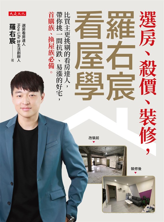作者介紹 羅右宸八年級生,畢業於元智大學國際企業管理學系,現為好生活國際企業股份有限公司創辦人兼執行長。十多年來,實際經手改裝、活化老屋超過500間,經過精準議價和細心裝修,讓許多房子增加了百萬以上價值。以「活化閒置資產、改善居住好生活」為理念,打造全臺規模化房屋資產管理平臺「How Life好生活」,推動「房地產×AI×資產平臺」的整合創新,目標5年內整合七都上萬個單位,建立完整老屋改造生態系。 經常受邀TVBS、東森、非凡等多家主流媒體專訪,也曾於網路節目與多場青年創業論壇分享房產投資經驗。
