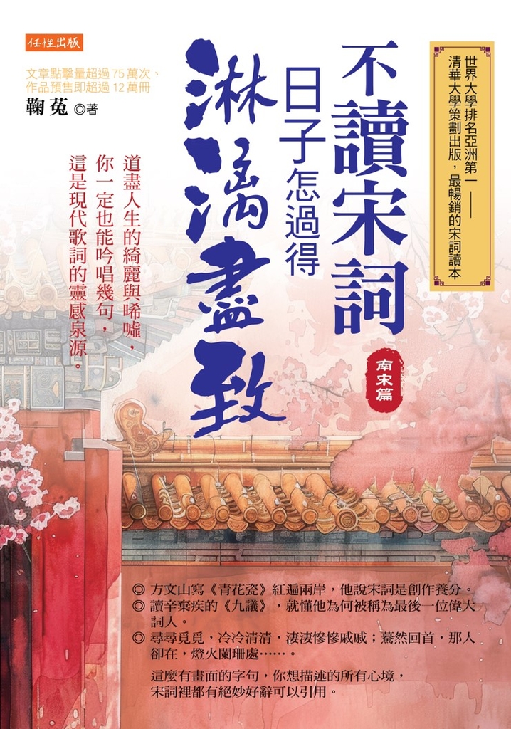 | 簡介 / | 不讀宋詞,日子怎過得淋漓盡致(南宋篇) (電子書):國文老師強力大推版!!世界大學排名亞洲第一——清華大學策劃出版,最暢銷的宋詞讀本,中國中小學指定讀本,預購階段 |