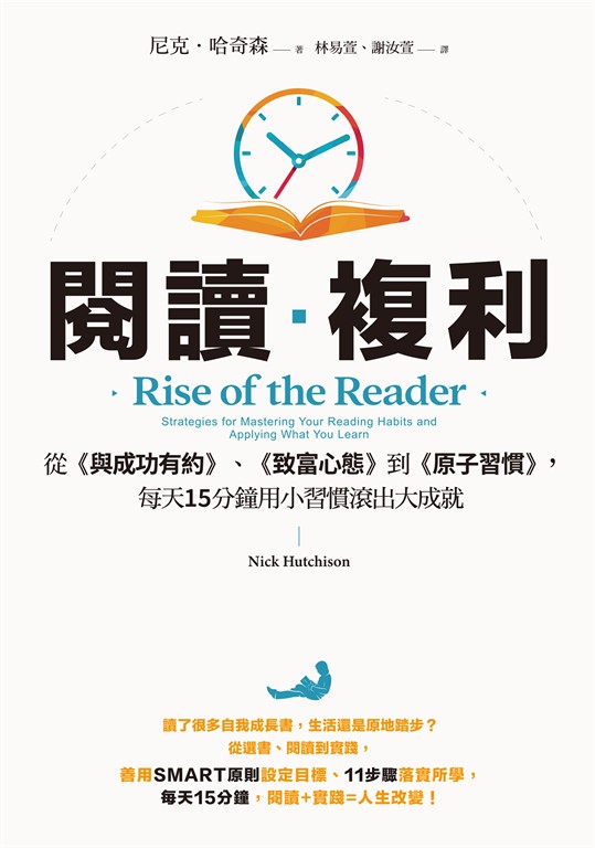 內容簡介 你是否渴望改變,卻苦無方法?你是否閱讀了無數本自我成長書籍,生活卻還是原地踏步?其實讀書不是沒用,而是打開書本的方式不對!閱讀推廣者、圖書行銷代理機構創辦人尼克.哈奇森(Nick Hutchison),迄今已經閱讀了超過四百本自我成長暢銷書。閱讀不只幫助他戰勝社交焦慮、成功創辦屬於自己的事業,更讓他在生活中的方方面面都有所成長。因此他相信,「閱讀+實踐」就是讓書本改變人生的硬道理!每天十五分鐘,就能透過「閱讀複利」累積起驚人的改變。本書將不藏私公開:▍高效閱讀與做筆記的方法掌握策略,將書中知識轉化為具體行動。▍擺脫壞習慣的技巧善用三個步驟,輕鬆戒除成功路上的絆腳石。▍找到「成功好夥伴」與朋友一起閱讀、共同實踐,在成功路上一起進步。▍實現閱讀的複利效應透過微小的改變滾出健康、財富、幸福的巨大成就。跟著十四個章節的逐步引導,你將學會:▍SMART原則設定目標,透過閱讀量身打造理想生活。▍善用活動追蹤表,審視成效、管理成長進程。▍打破思維框架,用新的視角看世界,擁抱無限可能。▍提升健康、財富與幸福的新習慣,打造全方位平衡人生。別再讓書本束之高閣!現在就開始行動,將閱讀化為改變的力量,踏上成長之旅!本書適合:▍渴望改變,卻不知從何開始的你。▍讀了很多書,卻難以付諸實踐的你。▍想改善生活,追求健康、財富和幸福的你。各界讚譽——「建立閱讀習慣是一項關鍵的核心技能。終於,有一本書教你如何從閱讀中獲得最大收穫。《閱讀複利》是解鎖你全部潛能的萬能鑰匙。」——尼爾.艾歐(Nir Eyal)/暢銷書《專注力協定》(Indistractable)、《鉤癮效應》(Hooked)作者「《閱讀複利》是一本改變你人生的終極指南,一次一本書地重塑你的世界。這是一本必讀之作,也是一場『把閱讀變成生活方式』的號召,書中充滿可行的建議與改變人生的大絕招。這本書是任何想要征服人生的挑戰者必備的路線圖。」——MJ.狄馬哥(MJ. DeMarco)/暢銷書《快速致富》(The Millionaire Fastlane)作者「這是讀者的一場勝利!尼克將所有最精華的建議集結成一本精彩的指南,獻給所有渴望卓越的人。」——凡妮莎.范.愛德華茲(Vanessa Van Edwards)/暢銷書《和任何人都能愉快相處的科學》(Captivate)、《暗示的力量》(Cues)作者行動派推薦——Jacky/《電扶梯走左邊》主持人文森說書/YouTuber、Podcaster愛瑞克/《命定之書》作者、TMBA共同創辦人歐馬克/《你也能成為千萬富翁》課程製作人鄭俊德/閱讀人社群主編(依首字筆劃排序)