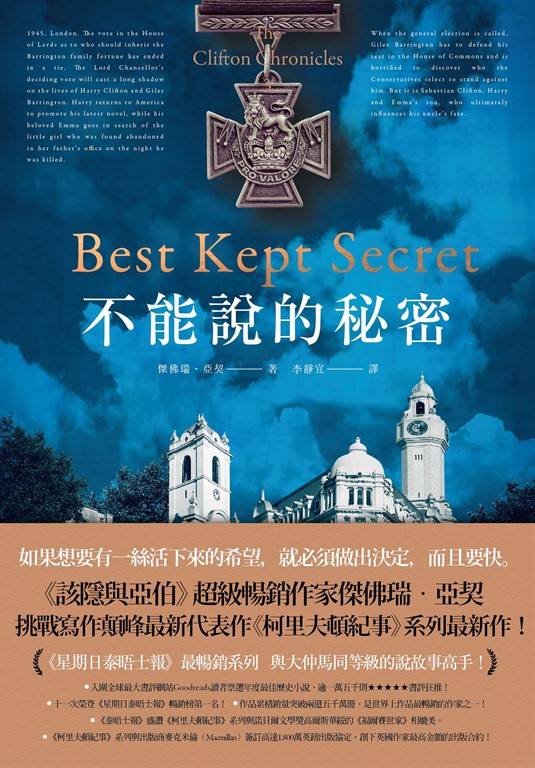 內容簡介 《該隱與亞伯》超級暢銷作家傑佛瑞.亞契 挑戰寫作顛峰最新代表作《柯里夫頓紀事》系列第三集!如果想要有一絲活下來的希望,就必須做出決定,而且要快。 《星期日泰晤士報》最暢銷系列∣與大仲馬同等級的說故事高手! ●入圍全球最大書評網站Goodreads讀者票選年度最佳歷史小說,逾一萬五千則★★★★★書評狂推! ●十一次榮登《星期日泰晤士報》暢銷榜第一名! ●作品累積銷量突破兩億五千萬冊,是世界上作品最暢銷的作家之一! ●《泰晤士報》盛讚《柯里夫頓紀事》系列與諾貝爾文學獎高爾斯華綏的《福爾賽世家》相媲美。 ●《柯里夫頓紀事》系列與出版商麥克米倫(Macmillan)簽訂高達1,800萬英鎊出版協定,創下英國作家最高金額的出版合約! 一九四五年,倫敦,英國上議院針對誰應繼承巴靈頓家產的投票,同意與反對票數竟相同。上議院大法官決定性的一票,將會深深影響哈利與吉爾斯的一生。 哈利回到美國為自己的最新小說進行宣傳,而他摯愛的艾瑪則繼續追索她父親辦公室遇害那一晚、被遺棄在裡面的那個小女孩。大選將至,吉爾斯得要力保自己在下議院的席位,但卻赫然發現保守黨挑選的對象與他為敵。不過,發揮最終關鍵影響力的人卻是塞巴斯汀,哈利與愛瑪的兒子,將會影響他叔叔的命運……名人盛讚 這是很棒的一本讀物,捧起就放不下來。傑佛瑞就是有本領寫出讓你愛不釋手的作品……這是關於愛、背叛、欺騙、正直、邪不勝正的故事。非常引人入勝……你會讀得入迷,期待所有的線索能交織出完整的結局。亞契在最後一章的最後一段丟下炸彈……如果我是BBC的戲劇主管,肯定馬上開拍第一季!——傑瑞‧海斯,旁觀者報 我在旅途中讀這本書,發現我竟然不顧自己的簽書會,一心只想回頭繼續讀。坐在牛津的星巴克,拚命翻著書頁……我必須承認,我完全被迷住了。這書好看得不可思議……亞契是最棒的作家!——每日電訊報,安東尼‧霍洛維茲 述說故事的能力極其出色……極不尋常的天分……這並非可以靠著學習或努力得來的。你要嘛有,要嘛就沒有……傑佛瑞‧亞契是最頂尖的說故事高手……若是不能讓讀者上鉤,如何賣出兩億五千萬本書!這就是亞契的成就,一本接一本。亞契的讀者會一路追隨到底,因為他們想知道接下來的故事發展會如何。——泰晤士報文學編輯,艾瑞卡‧華格納 亞契最頂尖的作品!——每日電訊報 哈利從布里斯托貧民區力爭上游躋身上流社會的故事讓我感動至深……他正要藉婚姻踏入貴族家庭,卻在祭壇前發生悲劇。我不會在此揭露內情,破壞各位閱讀的樂趣。這故事的轉折令人屏息以待!——每日郵報 我非常喜歡這本書,敘事步調與吊人胃口的結局都讓人歎為觀止,也讓我們更期待下一集!——週日快報 這書很不得了,非常好看,非常棒!——書商雜誌平裝書書評 跨越多代的史詩鉅著,充滿亞契擅長的曲折離奇情節!——愛爾蘭週日商業郵報 他很可能是我們這個時代最會說故事的人!——週日郵報 這人是個天才……擁有強大且刺激的點子!——標準晚報 亞契說故事的能力只能以天才形容之!——每日電訊報 重回巔峰……亞契的想像力無與倫比……讓人迫不及待往下看!——週日泰晤士報 很少有作家能像亞契這樣讓人手不釋卷……輕鬆易讀——很可能是他最擅長的!——泰晤士報 我們這個時代最偉大的敘事者和小說家!——星期日郵報 如果諾貝爾文學獎設立『最會說故事獎』,傑佛瑞.亞契一定會獲獎!——每日電訊報 可以與亞歷山大.大仲馬相媲美的作家!——華盛頓郵報 傑佛瑞.亞契擁有不容置疑的創作能力、旺盛的精力以及輕鬆愉快的風格!——週日電訊
