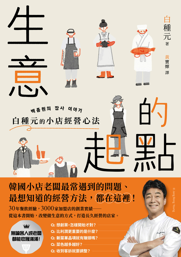 內容簡介 想創業,怎樣開始才對?做生意,比起賺錢更重要的是什麼?菜單品項越多越好嗎?被客訴就要調整?韓國餐飲經營專家 白種元30年餐飲經驗,3000家加盟店的創業實績帶你從這本書開始,改變做生意的方法,一起打造長久經營的店家★韓國讀者熱烈回響!「看完這本書,我放棄了不切實際的幻想,開始認真思考餐廳定位。」「書中提到應對客訴的部分,讓我學會如何將危機轉化成機會。」「員工不可能跟老闆一樣拚命,選擇腳踏實地的人並好好帶領他們,這個提點讓我重新思考如何管理團隊。」「這本書不只適合開餐廳的人,任何想做生意的人都能從中學習洞察市場的方法。」「收穫滿滿,書中給的建議比我預期的還要真實。」★在快速變化的商業世界中,戰勝逆境的生存手冊2024年,韓國「餐飲經營專家」白種元在節目《黑白大廚》中展現對美食的獨到見解,吸引了全球的關注。其實,在這個耀眼的成就背後,他已深耕餐飲業三十餘年,擁有超過3000家店,被譽為韓國美食界的領軍者。時光倒回三十年前,1994年時,白種元以「The Born Korea」公司開啟他的餐飲之路,從「本家」、「新村食堂」、「香港飯店0410」到平價咖啡連鎖「白啡茶房」,打造逾二十個餐飲品牌,將韓國美食推向國際。然而,他的餐飲之路並非一帆風順,早年創業時,他曾因全球金融危機負債累累,陷入人生低谷,後來憑著不懈的堅持走出一條新路。2013年時,他有感於常被人詢問「做餐飲要怎樣才能成功?」,進而開啟每月一次與小店老闆們的面對面交流,傾聽他們遇到的困難,為他們指點迷津。這些年來,他將聽到最多的困惑與自己的解答集結成這本書,希望能幫助更多正在創業路上努力奮鬥的人們。本書從開店前如何選擇地點、該做哪些準備,到創業初期的生存守則,再到生意興隆後的展店策略,涵括了餐飲經營的每個不同階段。白種元不藏私地分享自己的祕訣,例如「簡化菜單才能抓住客人」、「從失敗中學習比成功重要」、「回頭客是餐廳成功的祕訣」等務實建議,句句直擊核心。無論是準備踏上創業之路的新手,還是已經在這條路上奮鬥的夥伴們,這本書都能陪伴你打造出最適合自己的店舖,長長久久地站穩立基,持續經營下去。★心法祕笈搶先看Q1.我想創業,但是該做哪一行?做自己喜歡的事情來賺錢!我的所有決定都有自己的標準,絕不會選自己不想要的東西。理由很簡單,因為我沒辦法把任何事都做到最好,無論是誰,必須是自己喜歡的事情才會奮起力量去做。Q2.開餐廳,賣哪種料理才好?選擇自己平常最喜歡的菜色來開店是最理想的,自己喜歡、也吃得津津有味的料理,每次吃的時候有什麼怪怪的地方,就會很直覺地去思考可以如何調整。Q3.販售別人都沒有的全新餐點,就有賺頭?初次做餐飲但失敗的人,大多是試圖想從無到有地創造,覺得一定要做些新東西才能賺錢,但真是如此嗎?不,從「無」裡是找不到東西的,如果沒有原味豬腳的話,會有辣味豬腳嗎?其實只需要從既有菜色裡做一點變化即可。Q4.員工很重要,該怎麼雇人?員工不是要被教育的對象,而是配合彼此行動的夥伴。老闆親自下場,把店內工作方式建立起來,員工也會跟著做。比起花心思找很厲害、會做事的員工,不如雇用平凡但認真的員工,老闆做什麼就跟著做,這樣更有效果。Q5.怎樣的人適合開餐廳?開餐廳之後,比起想要過上更好的生活,更好的是從頭開始回想一遍,如果無法從把小店面慢慢養大的過程中體會出樂趣的話,最好不要開餐廳。從事情本身找出樂趣,感謝客人、客人也會感謝老闆,在這樣的眼神交會中找尋快樂吧。