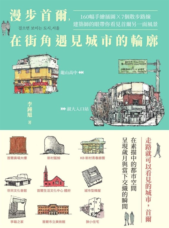 內容簡介 160 幅手繪插圖 × 16 條街道 × 無數歲月與當下交織的瞬間用雙腳與畫筆,重寫我們對首爾的想像。建築師的目光、行人的節奏,繪出城市的另一面。每一次轉角,都是歲月與回憶的交會。我個人認為首爾是個古怪又魅力無窮的城市,它既保著那個崇尚發展的時代怪誕,又同時擁有著與之伴生的獨特氣質,這正是我熱愛首爾的原因。……我感覺自己就像在首爾漫步,追隨著作者的目光;獨自一個人散步很美好,但和作者一起,更棒!──韓醫學博士鄭澤華作者透過160餘幅手繪插畫與散文,引領讀者從日常都市空間中發掘「人文」與「美」的新視角,是另一種低調卻深刻的城市旅行法。──Play News(플레이뉴스)문성식記者(Mun Seong-sik)作者說:「『仔細』 與『長久』是在城市散步的基本姿態。」喜歡隱藏在平凡之中的不平凡,找出那些不平凡、在首爾各個地方走著、寫著、畫著,在國家與城市中流轉,持續進行這一專屬自己的尋找寶物時間。一步步的走著 一筆筆的描繪,城市的空間 首爾的轉折首爾近現代的生活與時間靜靜 累積 的地方,散步在首爾東西南北的都心與巷弄。今日的我們會被周圍許多有趣的事情吸引,但卻對城市與街區的歷史毫不在意。這時,就要無條件走出去,不帶任何期待的開啟城市散步,就可能開始關心那個地方,並產生愛戀,這一愛戀可以擴及至該場所的歷史,先前看不見的那些,就會開始印入眼簾。──作者的話本書以繪畫和悠閒漫步的方式,展現首爾的時空。本書以首爾站為中心,透過展現市中心和小巷中那些熟悉的場所,層層疊疊的近現代史,引領讀者重新發現周圍城市空間的人文價值。透過賞心悅目的速寫和繪畫,讀者將重溫這些場所的魅力,同時感受貫穿路線的時空錯落。