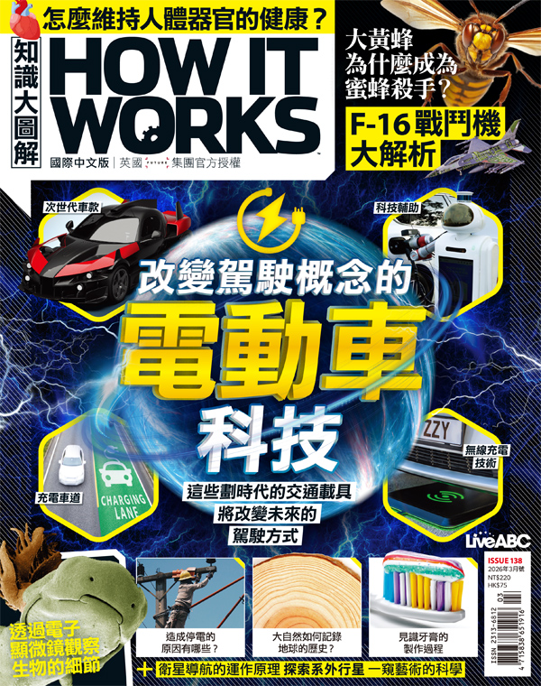 內容簡介 近年來,在道路上奔馳的電動車逐漸增加,相關設施(如充電站)也越發常見。但電動車其實不是21世紀的新發明,早在19世紀末首批電動車上路以來,各地的發明家各自開發出以電力驅動的車輛。時至今日,電動車產業蓬勃發展,不難想見電動車的電池、充電方式與行駛的道路會持續有所發展。本月特別單元〈駕馭電動車〉(p.22)將帶讀者一探電動車的運作原理,以及這項交通工具日後的可能發展與變革。 走進遊樂園,必玩的設施肯定少不了雲霄飛車。這種在曲折軌道上行駛的列車為何廣受大眾喜愛?其中又蘊含了哪些科學原理,讓搭乘者體驗到令人驚聲尖叫的刺激感呢?〈解析雲霄飛車帶來的刺激快感〉(p.32)將深入介紹這項經典的遊樂設施。