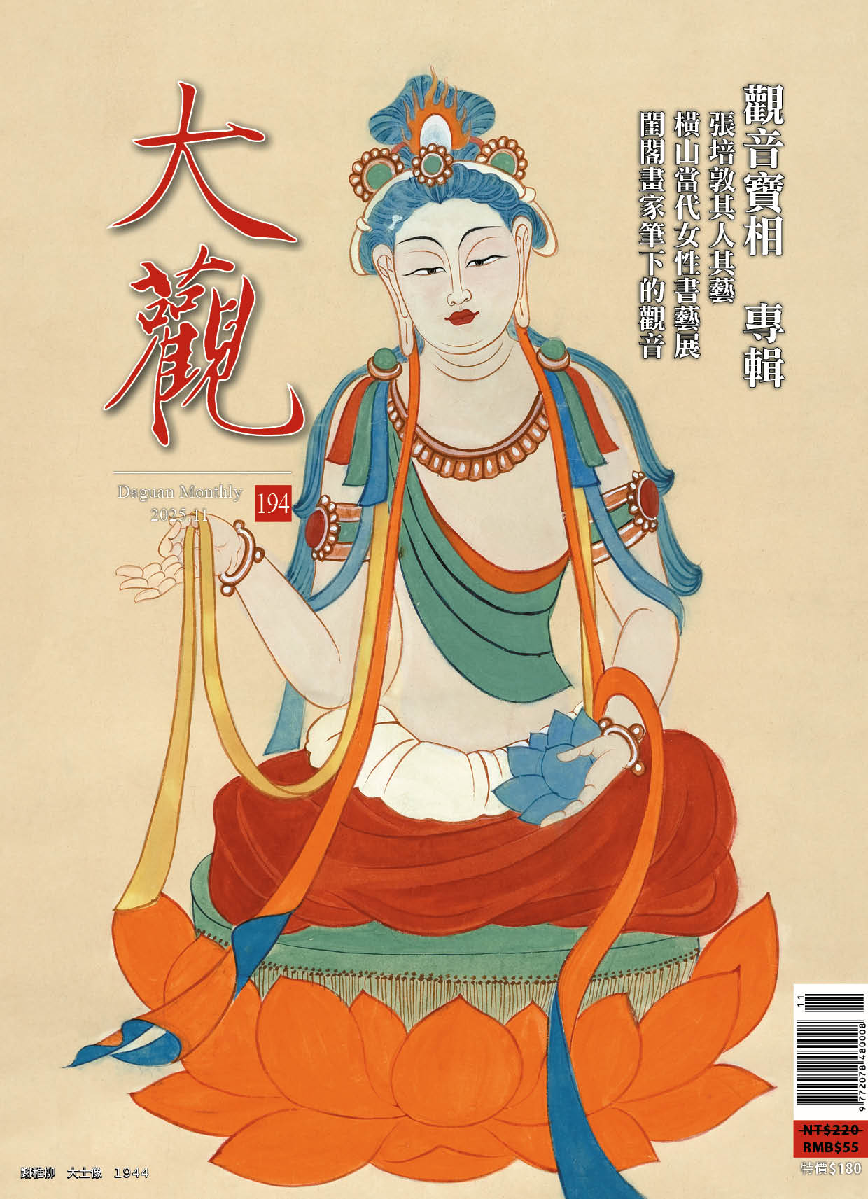 內容簡介 【內容簡介】觀音寶相 專輯 張培敦其人其藝 橫山當代女性書藝展 閨閣畫家筆下的觀音【內容大綱】(編者的話)慈容萬象文‧編輯部觀音菩薩的形象,千年以來融印度、中亞與東亞文化於一體,既承載信仰的深度,也映照藝術的流變。本期專題「觀音寶相」特別以五篇文章,為讀者層層推展出從古至今觀音形像流變的豐富圖景,呈現「慈容」背後的萬千氣象。觀音形像的演變,本身即是一段橫跨文化與時代的旅程。早在公元初的犍陀羅地區,菩薩形象深受希臘化藝術影響,以鬚髯濃密、深目高鼻的男性樣貌出現。隨著佛教沿絲路傳入中土,觀音信仰在南北朝時期逐步紮根,形象也逐漸轉向法相慈悲、尋聲救苦的顯教觀音典型。至七世紀密教觀音中,更發展出千手觀音、十一面觀音等,展現儀軌與象徵的嚴謹法相。從域外走入中土的觀音,進一步與本土文化交融,轉化為具女性特質的親近面貌,如送子觀音、魚籃觀音,凝鍊為人間願望的溫柔投影。本期文章即在此脈絡上展開:首篇梳理古代觀音形像的轉變,揭示風格背後的文化對話;接續聚焦京津畫家筆下的觀音,探討傳統筆墨中的莊嚴氣韻;再觀海派與嶺南畫家如何融入市民審美與地域習俗,賦予觀音鮮明的時代與性格。而「渡海三家」與大風堂弟子之作,則在古典基礎上注入個人性情與文人逸趣,展現觀音形像近代的創造性轉化。最後,〈閨閣畫家視角下的觀音形象〉一文中,觀察到不同於主流視角的慈悲面容。五篇專文共同勾勒出觀音形像在藝術史中的多重面貌,願讀者透過這些文字與圖像,窺見的不僅是風格的流轉,更是信仰與美學如何相互滲透,如何在人間留下「慈容萬象」的動人印記。賞析這些觀音的圖像與畫作,亦令人聯想起幼年持香念佛的記憶。身處孩童時代,手上總繫著一串佛珠,依稀還能想起長輩苦口婆心要求每天持頌的畫面,當時確實一一照作,希冀神祇分得些許的福分。時至科學昌盛的今日,過往這些種種,不僅是溫馨的情感羈絆,持唸法號、靜坐冥想更似是給予緊湊生活步伐中的一些舒緩。這些信仰的片段,如今已不再僅是宗教的儀式或對神祇的祈願,而是化作心靈深處的一種安頓。當凝視觀音的慈容,耳邊彷彿又響起誦經的聲音,那份從童年延續至今的靜謐與柔光,提醒著人—在現代的繁忙與理性之中,仍需留一處清明與溫柔,讓心有片刻歸依。