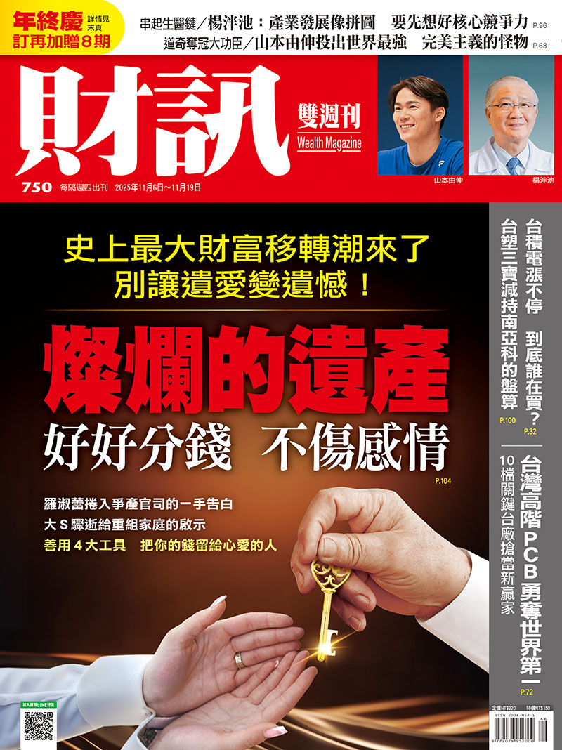 內容簡介 封面故事燦爛的遺產● 史上最大財富傳承潮來了 別讓遺愛變遺憾● 羅淑蕾:人生瀟灑走一回 錢花完就沒煩惱● 善用4大工具 把你的錢留給心愛的人● 從容面對人生最後功課 掌握5個步驟預立安心遺囑● 大S驟逝啟示錄 重組家庭及早規畫守護摯愛● 李鍾桂失智警示 誤踩監護地雷讓遺囑變調● 手足繼承必考題 如何解開不動產賣不賣的僵局● 高資產族不可不知 從繼承到傳承的兩堂必修課特別報導● 高技 AI底層造浪者● 欣興技術突圍 兩年後挑戰二微米● 技術力扳回一城 台灣高階PCB世界第一● 中資高調挖角 兩岸PCB產業質變產業動態● 台塑三寶減持 南亞科的背後盤算● 鞋王張聰淵悄布局 黃色小鴨轉攻營建投資雙週報● 川習會背後的稀土經濟學● 記憶體將複製航海王狂潮?