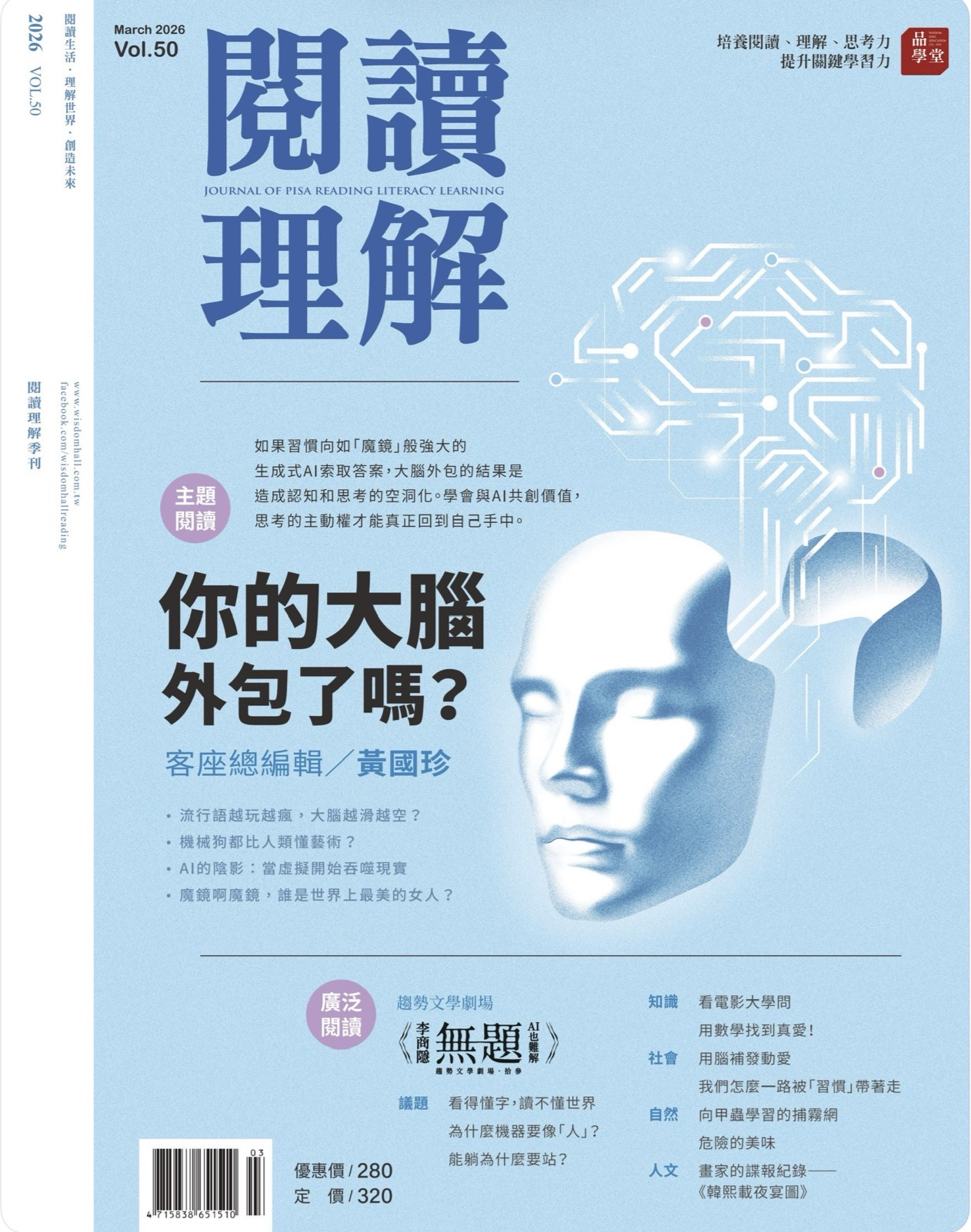 內容簡介 編者的話:五十知天命,智啟新紀元總編輯 黃國珍 時間在物理的尺度上,是公平且規律的。12年,是12個365天的循環,是12輪四季的更替,是4,383次日出與月升的交替。然而,當同樣的時光被放置在生命與意義的歷程上時,它便不再只是單純數字的累加,而是會從「量的紀錄」轉化為「質的轉生」,展現出截然不同的面貌。 12年,足以讓一個幼嫩的生命成長到活潑靈動,足以讓潛心苦讀的學子跨入高等學堂的門檻,足以讓一盅輕釀轉化為一杯醇厚的美酒。那麼,一本堅持了12年、跨入第13年,並在此刻迎來第50期的雜誌,究竟改變了什麼? 2013年,品學堂發行第1本《閱讀理解》學習誌。那時我們播下一顆種子,試圖在臺灣教育的土壤裡,探尋「素養」的意義。這12年來,我們與親師生共同經歷了無數次的對話與翻轉,將閱讀從「尋找標準答案」的束縛中解救出來,轉化為一種建構觀點的能力。這份「質」的生成,不僅在於雜誌期數的增長,更在於我們在無數孩子心中種下了思考的火種,讓閱讀成為他們理解世界、定位自我的導航系統。 《論語.為政》有云:「五十而知天命」。在《閱讀理解》邁向第50期的里程碑時刻,這句話對我而言有了更深層的感悟。所謂「知天命」,並非消極的宿命論,而是指在經歷了人生的歷練與不斷的努力後,明白了天道的運行與事物的規律。它是一種從「不惑」進階到「順天而行」的境界——知道哪些事是人力可為的堅持,哪些是不可強求的自然規律,從而在坦然接受中,體現出一種歷練後的成熟與智慧。 對於品學堂而言,這50期的歷程正是一場「知天命」的修行。我們明白了,閱讀教育的推動不能只靠一時的熱情,而是要順應時代的律動,在變革中守住不變的本質。我們深刻體悟到,數位浪潮與人工智慧的興起,並非要摧毀閱讀,而是天道運行中必然的演化。在深耕素養教育十三載後,我們不再執著於過往成功的模式,而是能以更成熟的智慧,擁抱這個科技與人文共生的新紀元。 站在第50期的起點,2026年標誌著品學堂的全面蛻變。我們正從一個提供認知內容的傳統角色,轉化為提供學習內容、評量診斷及優化方案的AI智能化教育系統。 這場變革,正是我們「順天而行」的具體實踐。面對當前「大腦腐爛」(brain rot)與「演算法焦慮」的社會現象 ,我們深知單靠傳統的引導已不足以應對。我們全面導入AI與大數據科技,不僅是為了效率,更是為了精準看見每一位學習者的「質」。透過數據演算,我們能診斷出學習者在認知路徑上的偏差,並提供個人化的優化方案 。這不是要讓AI取代思考,而是利用科技作為羽翼,讓人類的主體性能在更堅實的基礎上發揮 。 我們希望,當學生面對如「魔鏡」般強大的生成式AI時,他們不再是索取答案的被動者,也不是只會複誦模式的「數位鸚鵡」 。透過品學堂的智能化系統,我們要訓練的是一顆「知主體、明思辨」的大腦 。 從2013年的第1期雜誌,到2026年第50期出刊,這是一段從「量變」到「質變」,再到「智慧演化」的旅程。 12年的歲月讓酒變醇,讓生命變強韌。而《閱讀理解》的第50期,則讓我在知天命的年歲裡,看見了更大的責任與可能。品學堂將持續支持華文世界的閱讀素養教育,不論載體如何更迭,不論技術如何演進,我們啟發思考、成就生命的初衷不會改變。 感謝這13年來與我們並肩同行的每一位讀者。因為有你們,12年前的一小步才得以延續成為今日的一條通往未來的道路。讓我們帶著這份知天命的豁達與智慧,在AI與大數據的驅動中,繼續為下一代的閱讀素養及思考力領航。 品學堂與您約定,下一個12年,我們繼續與閱讀同行。 更多內容請見《閱讀理解》第50期