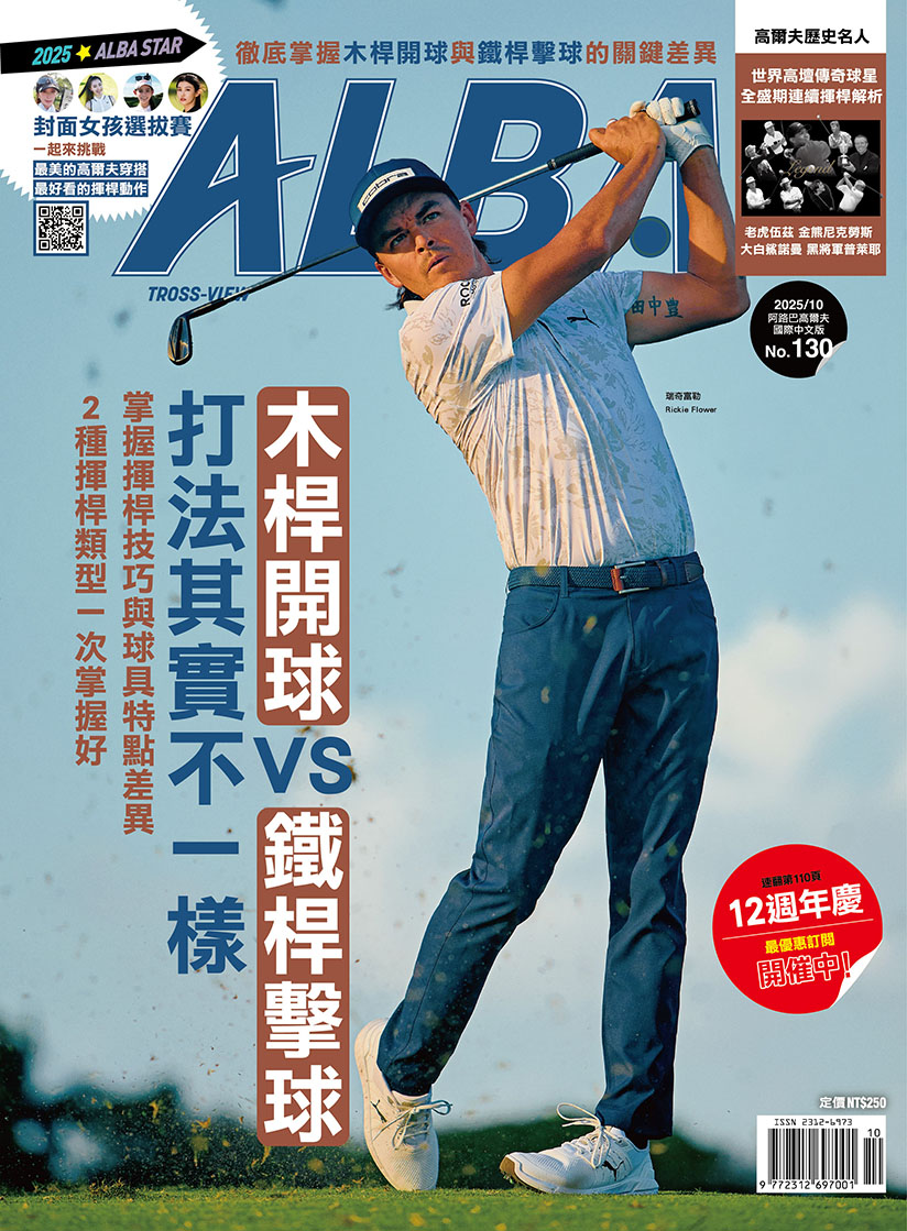 內容簡介 ALBA阿路巴高爾夫 國際中文版 2025年10月號 130期簡介【封面特集】掌握同時做好的2種揮桿的關鍵!梯台開球與鐵桿進攻職業巡迴賽選手經常說:「鐵桿和木桿的打法都一樣。」但是球友在開球狀況絕佳的那一天,鐵桿擊球表現往往比較不如人意,當鐵桿狀況開始提升的時候,梯台上的表現卻開始隨之下滑。如何讓鐵桿與開球木桿的狀況都好?鐵桿和木桿的揮桿到底有什麼不同?我們將從揮桿與球具2 個面向,詳細解析其中差異。傳奇球星的全盛期揮桿解析15 位世界高壇傳奇名將,全盛期的連續揮桿。測試身體的擊遠潛力最大開球潛能診斷最重要的是平衡力與活動度!球具深度報導短桿表現升級的捷徑,挖起桿的選擇技巧。新 易懂的重點教學5連發1 用BPM68的節奏來練習2 讓鐵桿不再打厚的左手空揮3 推桿過程中讓握桿力道保持一致4 距離不遠的人也能打好長五桿洞5 改善現代人最怕的腰痛問題