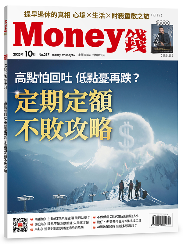 產品目錄 News010 情報站Column財經透視 呂忠達016 美降息 科技股與新興市場迎利多艾蜜莉存股術 艾蜜莉017 高息ETF遲未填息 該擔心嗎?30+財富成熟之道 葉芷娟018 定期定額報酬減半 早進場仍翻倍富人的人類學觀察 金融人類學徒019 富人式槓桿心態 放大耐心與收穫股市求生筆記 狄驤020 市場總是懲罰躁動和貪婪者現金流俱樂部 清流君021 主動式ETF短期勝 長期必敗數位經濟 李佳憲022 企業囤幣是手握寶庫或泡沫?秦老闆商學院 秦嗣林023 尊重領頭羊 團結力量才大 Trend邦妮區塊鏈 邦妮024 美股上鏈讓全天候交易變可能總經雷達 游庭皓026 降息不是漲跌關鍵 失業率才是美股觀察 美股航海王028 美股開趴狂飆 9月魔咒失效?032 Cover Story 封面故事高點怕回吐 低點憂再跌?定期定額不敗攻略案例篇:3真實案例揭示成敗分水嶺 無情者才能笑到最後高檔篇:定期定額一軍市場 停利不停扣最安心低檔篇:低檔才是勝負關鍵 加碼靠資金與勇氣Comic聰聰存股教室045 金管會出手,高股息ETF不香了嗎?Invest美股第一線 簡憶茹046 美國休閒牛排館雙雄大比拚美股焦點048 甲骨文千億訂單增添營收動能051 博通打入AI核心供應鏈市場脈動054 AI與政策加持 陸股多頭再起?台股教戰056 AI多頭延續 逢回分批布局產業透視鏡 韭菜叔叔060 光收發模組供應鏈迎來爆發老龔投資Club062 先進封裝AOI檢測商機俏投資攻略064 先進製程點火 3材料廠進補067 蘋果享關稅豁免 台供應鏈受益愛存股 溫正中070 3檔AI資服股 營收獲利雙成長 Learning卡爾先生聊投資 卡爾先生072 投資長勝=掌握週期+逆人性恩如簡單說 林恩如074 掌握2條線 擺脫「賣飛」宿命技術分析輕鬆學 朱家泓076 技術面選股必要6條件走圖天后教室 林穎080 圓弧底確認 股價可望漲逾20%投資學堂084 善用4槓桿工具加速致富FundJet Lee的投資隨筆 Jet Lee088 別太期望主動式ETF長期績效不敗存股術 陳重銘090 主動式ETF未經空頭 能否站穩?股息流觀察室 威利財經角092 股息ATM吐鈔變少 3招因應ETF研究室 張遠094 15檔陸港股ETF怎麼選?ETF筆記096 中國科技ETF單月漲逾2成20 Best099 20檔Best基金報酬亮眼、績效穩基金快易通 蕭碧燕100 省成本不等於高報酬 TISA級別基金只是選項之一理柏透視 馮志源102 科技產業+新型消費加持陸港股牛氣衝天Money理財會客室 林奇芬104 勞保潛藏負債大增 存退休金不能等退休講堂 王儷玲105 TISA結合AI智能 退休理財更省心富媽媽的幸福退休課 十方106 學會「不孝」才能財務自由聰明小資理財術 李勛108 理財小白第1張信用卡這樣辦人生轉運站 30節約男子110 存到一桶金 該買房還是投資?Z世代金錢學 貝殼小姐112 不做俘虜 Z世代讓金錢服務人生發燒話題114 詹璇依靠基金翻轉30K人生 贏家學堂116 遠離5個讓你財務受困的陷阱119 Report 特別企劃提早退休的真相 心境×生活×財務重啟之旅案例篇:早退學長姊的告白 你的退休由你來定義!建議篇:15個「早退」行動指南Family保險天地128 香港分紅保單值得買嗎?勞健保須知130 掌握3關鍵 勞保年金月領3萬法律常識132 熟齡勞工如何避免職場剝削?稅務新知134 買賣預售屋可申請重購退稅?房市掃描136 新青安鬆綁 房市能起死回生?