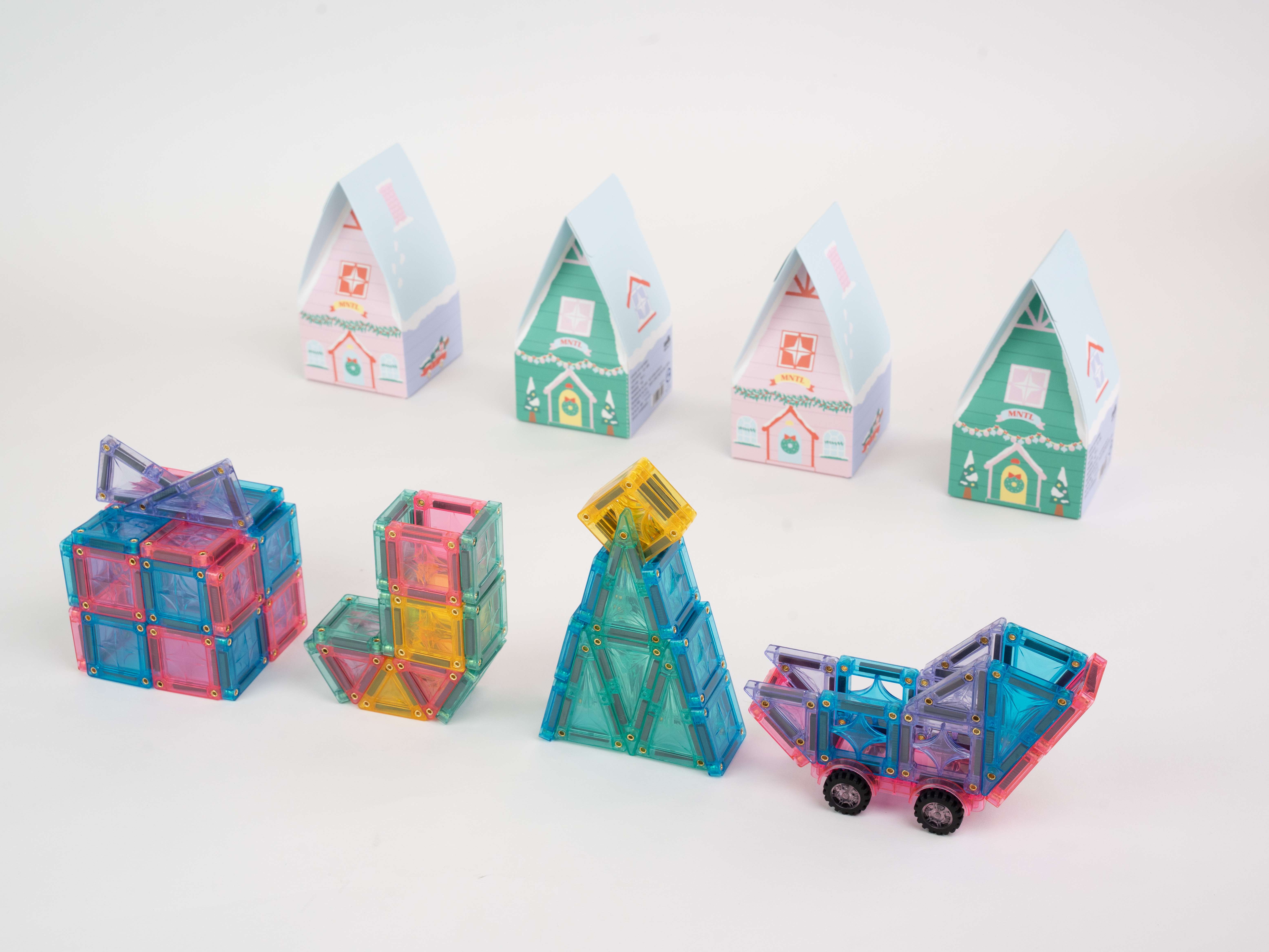 內容簡介 2025.11.10-12.25 MNTL全品牌滿$4,000即贈【繽紛聖誕村盲盒單入(隨機出貨)】,不累贈,限量贈完為止。立即選購👉MNTL磁力片 12 25前全品牌9折內容物(隨機則一出貨):雪人的禮物(22pcs)、精靈聖誕襪(17pcs)、心願聖誕樹(17pcs)、極地雪橇(13pcs+小小駕駛員1pc)聖誕小鎮村出現了神秘任務!只要收齊四個不同的聖誕配件,就能點亮你的繽紛聖誕村🎄✦ 隨機盲盒驚喜 —— 內含不同造型與顏色的磁力片,帶給孩子更多驚奇。✦ 北歐小屋設計 —— 溫暖的北歐建築靈感,開箱就像走進聖誕小鎮。✦ 互動式隱藏玩法 —— 包裝內側展開為北極地圖,可結合《世界建築指南》探索磁力片世界!