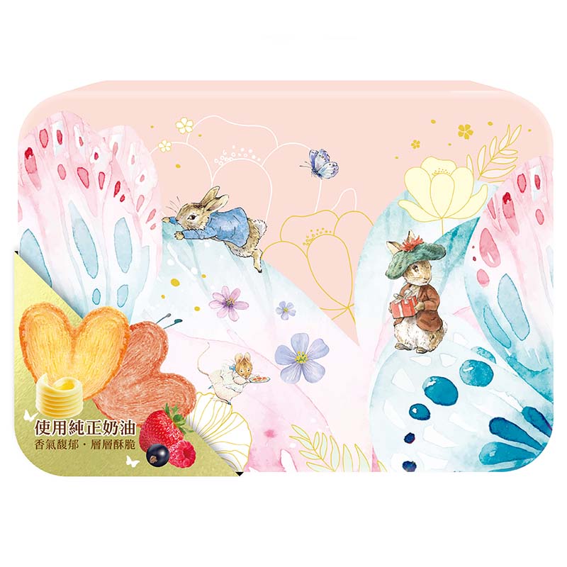 最佳賣點 : 1.比得兔蝴蝶水彩風格設計與內容物蝴蝶酥相互映襯 送禮精緻大方