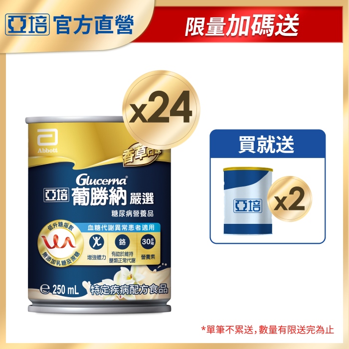 【亞培】葡勝納嚴選糖尿病營養品-香草口味(250ml) x24入