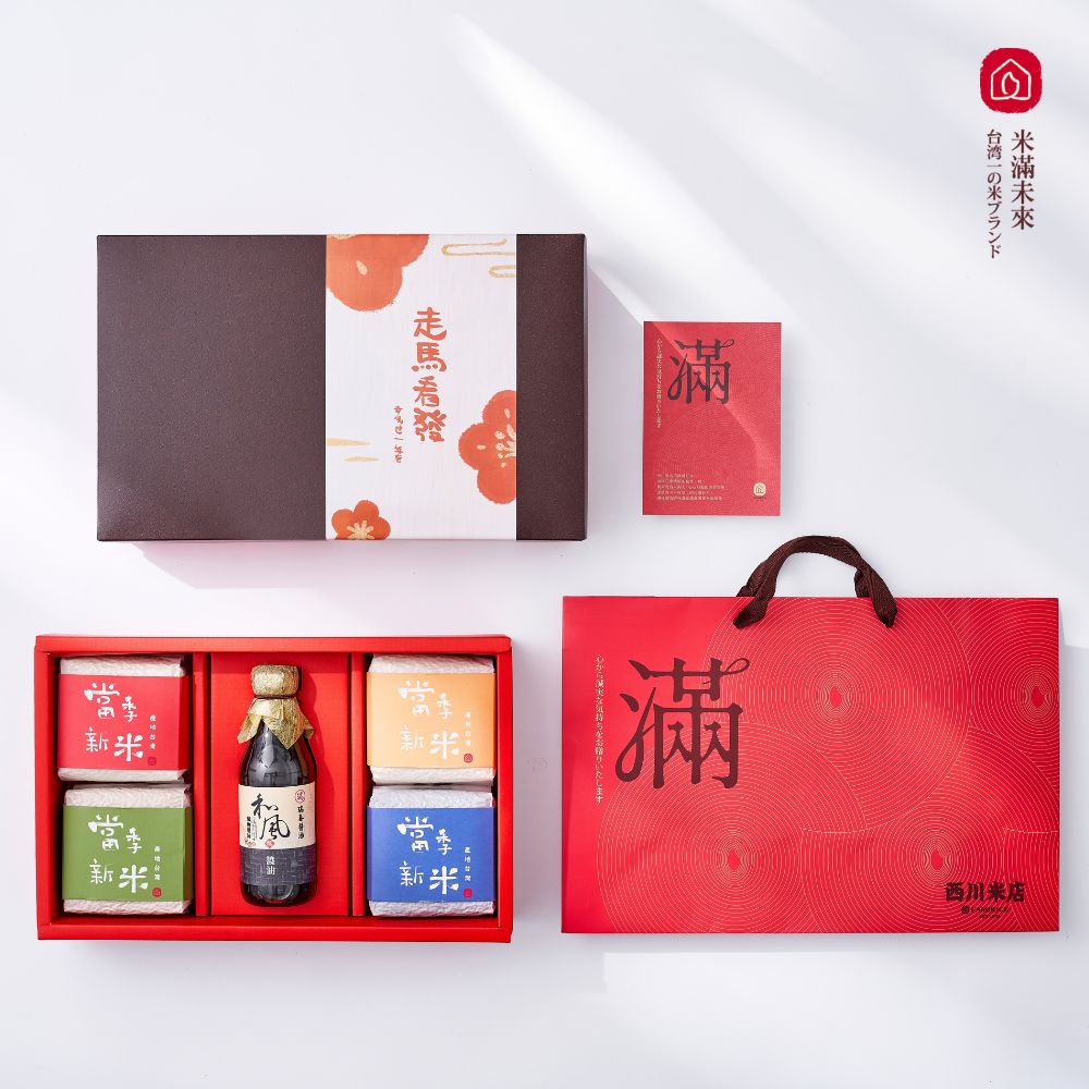 | 簡介 / | 2026春節禮盒 西川米店【公益台灣米醬油禮盒】創意馬年吉祥話 公益合作 文創禮盒 過年禮盒推薦 走馬看發 10個工作天出貨:-低碳環保、支持公益永續的春節禮盒-春節禮盒均 |